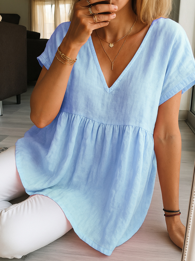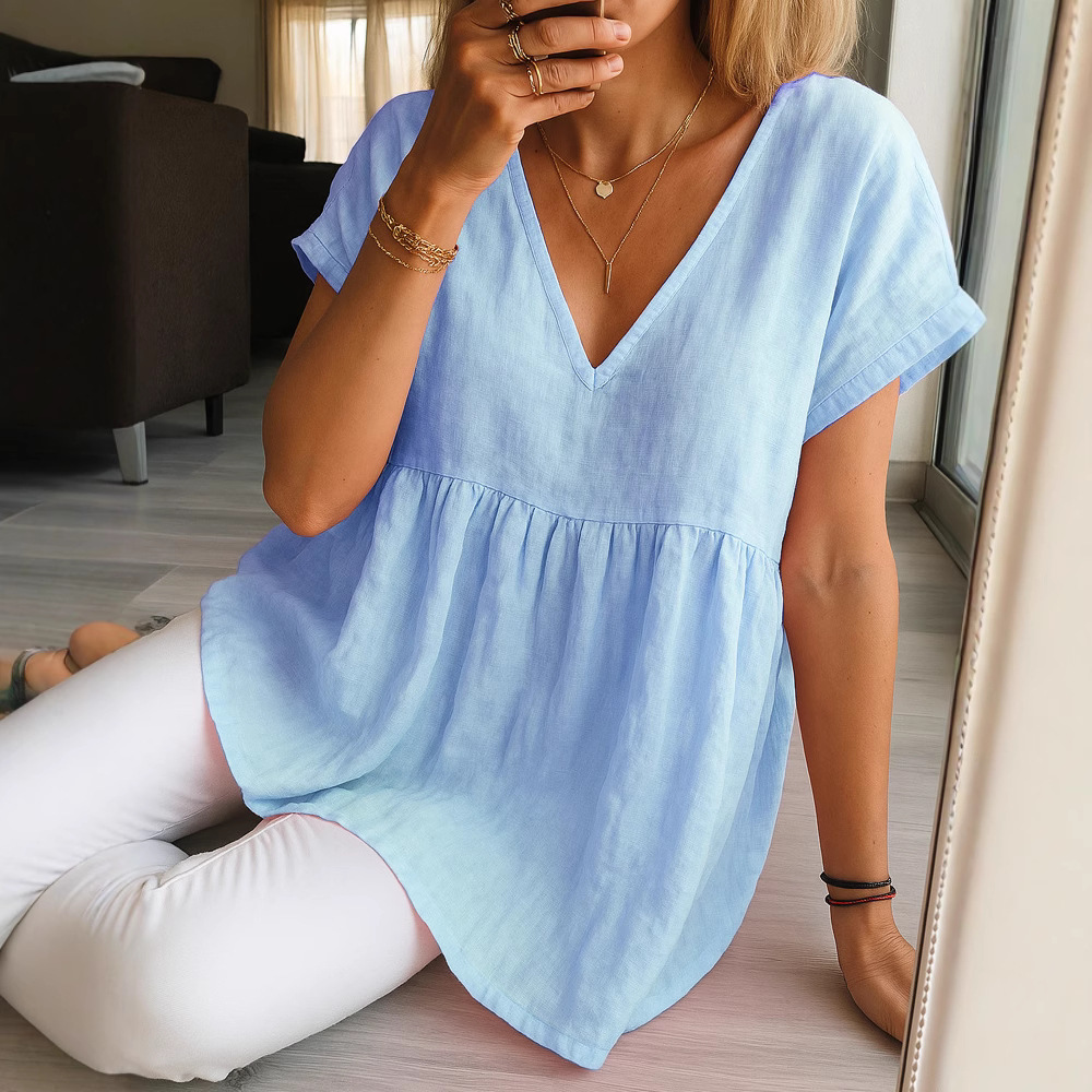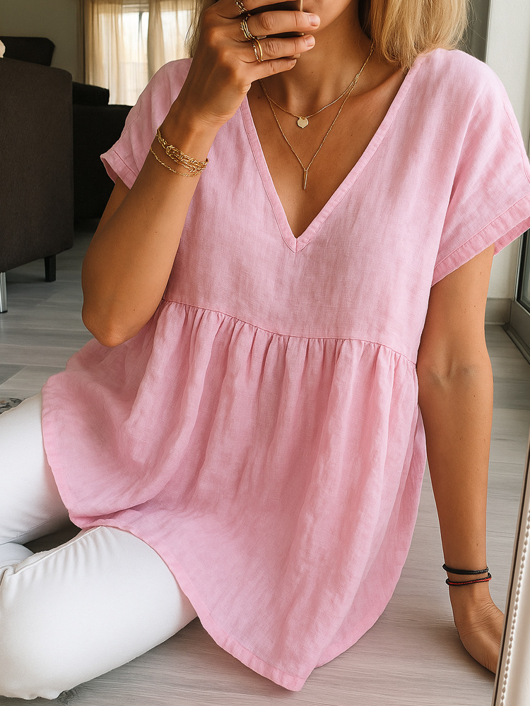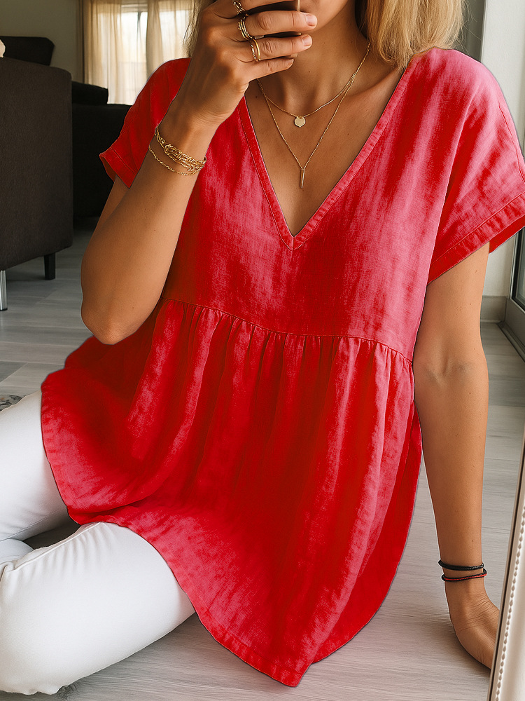 Women's Casual Loose-Fit Fashion Cotton-Linen Short-Sleeve Top