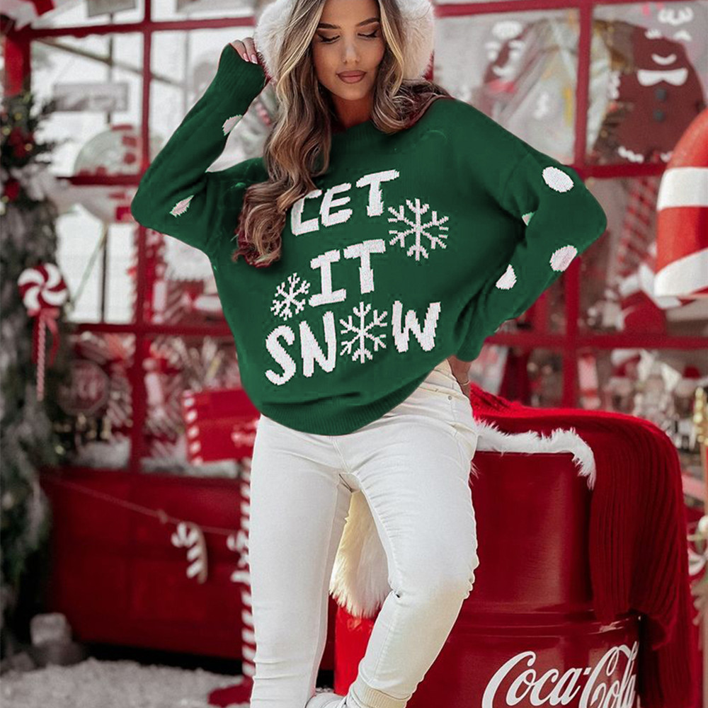 Women's Casual Loose Round Neck Christmas Red Sweater