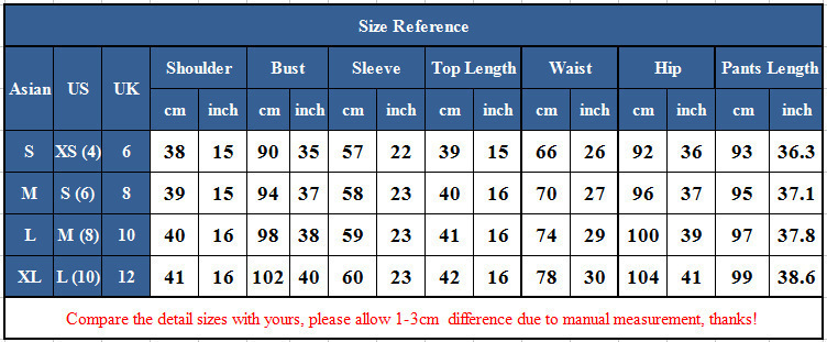 1. Asian sizes are 1 to 2 sizes smaller than European and American people. Choose the larger size if your size between two sizes. Please allow 2-3cm differences due to manual measurement. 2. Please check the size chart carefully before you buy the item, if you don't know how to choose size, please contact our customer service. 3.As you know, the different computers display colors differently, the color of the actual item may vary slightly from the following images.