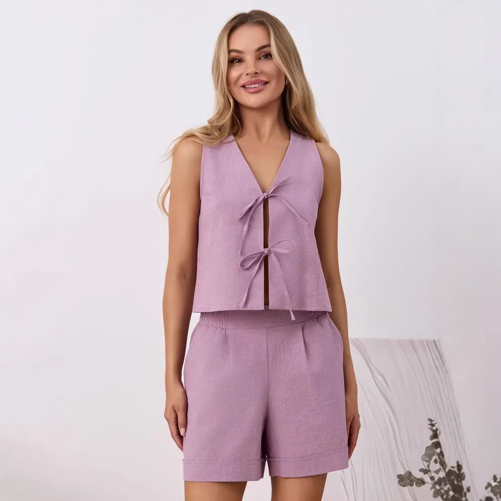 Womens Casual Resort-Style Vest And Shorts Two-Piece Set European And American Style