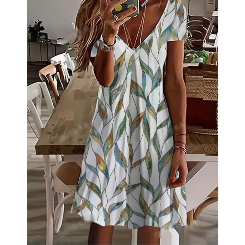 Women'S Casual Resort V-Neck Leaf Print Short-Sleeved Dress