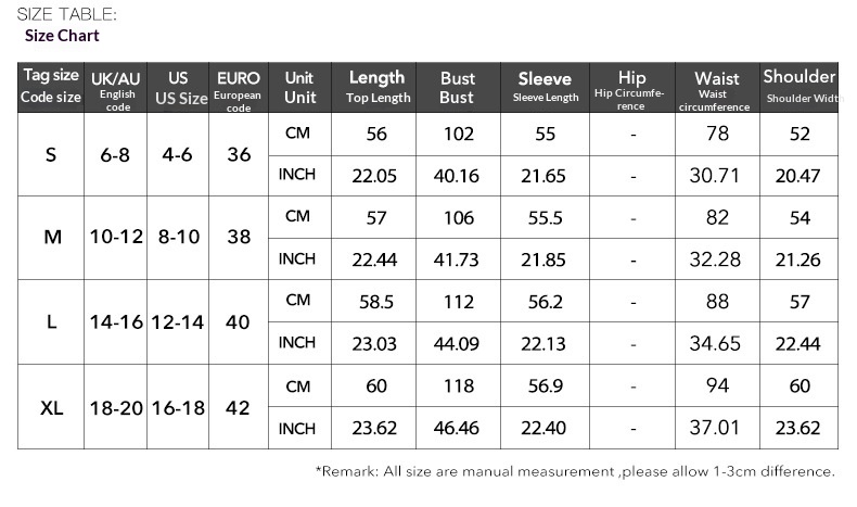 Size: XXS, XS, S, M, L, XL