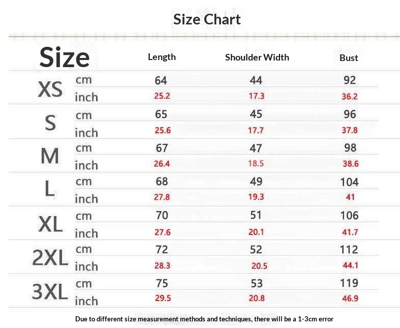 1. Asian sizes are 1 to 2 sizes smaller than European and American people. Choose the larger size if your size between two sizes. Please allow 2-3cm differences due to manual measurement. 2. Please check the size chart carefully before you buy the item, if you don't know how to choose size, please contact our customer service. 3.As you know, the different computers display colors differently, the color of the actual item may vary slightly from the following images.