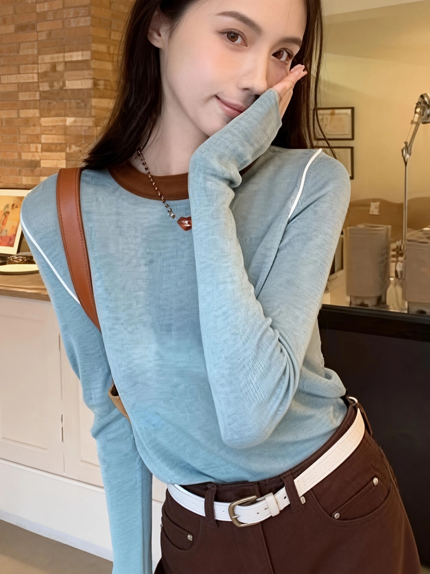 Women's Casual Round-Neck Color-Block Patchwork Top