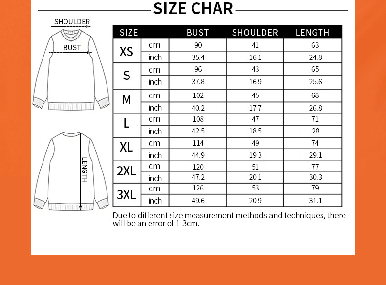 Sizes: XS, S, M, L, XL, XXL, XXXL