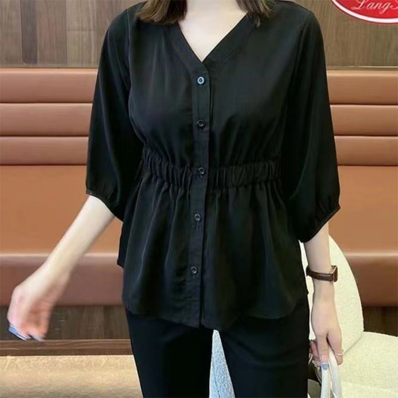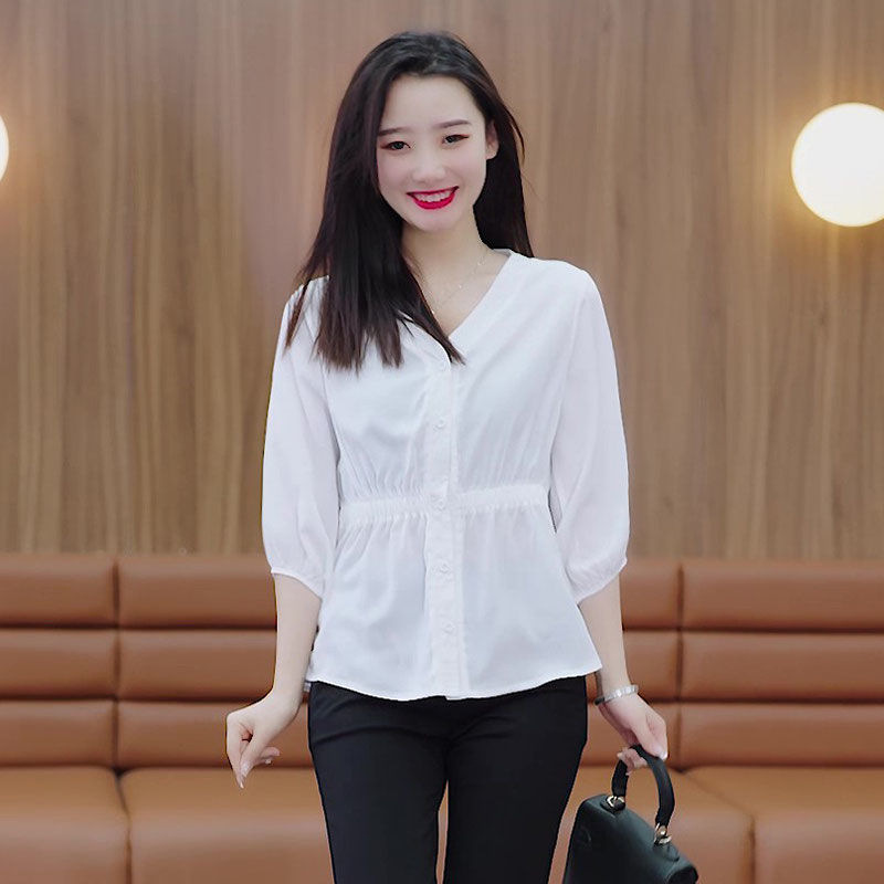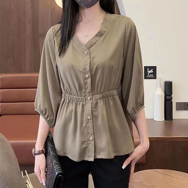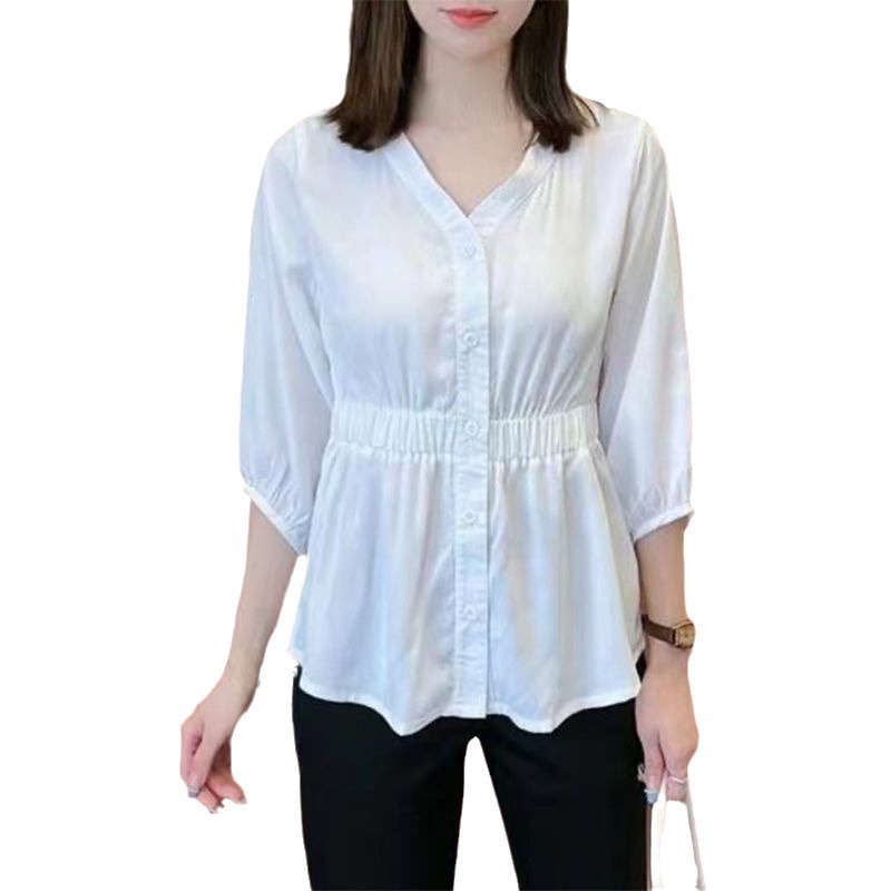 Women's Casual Simple Waist Cinched Seven Quarter Sleeve Shirt