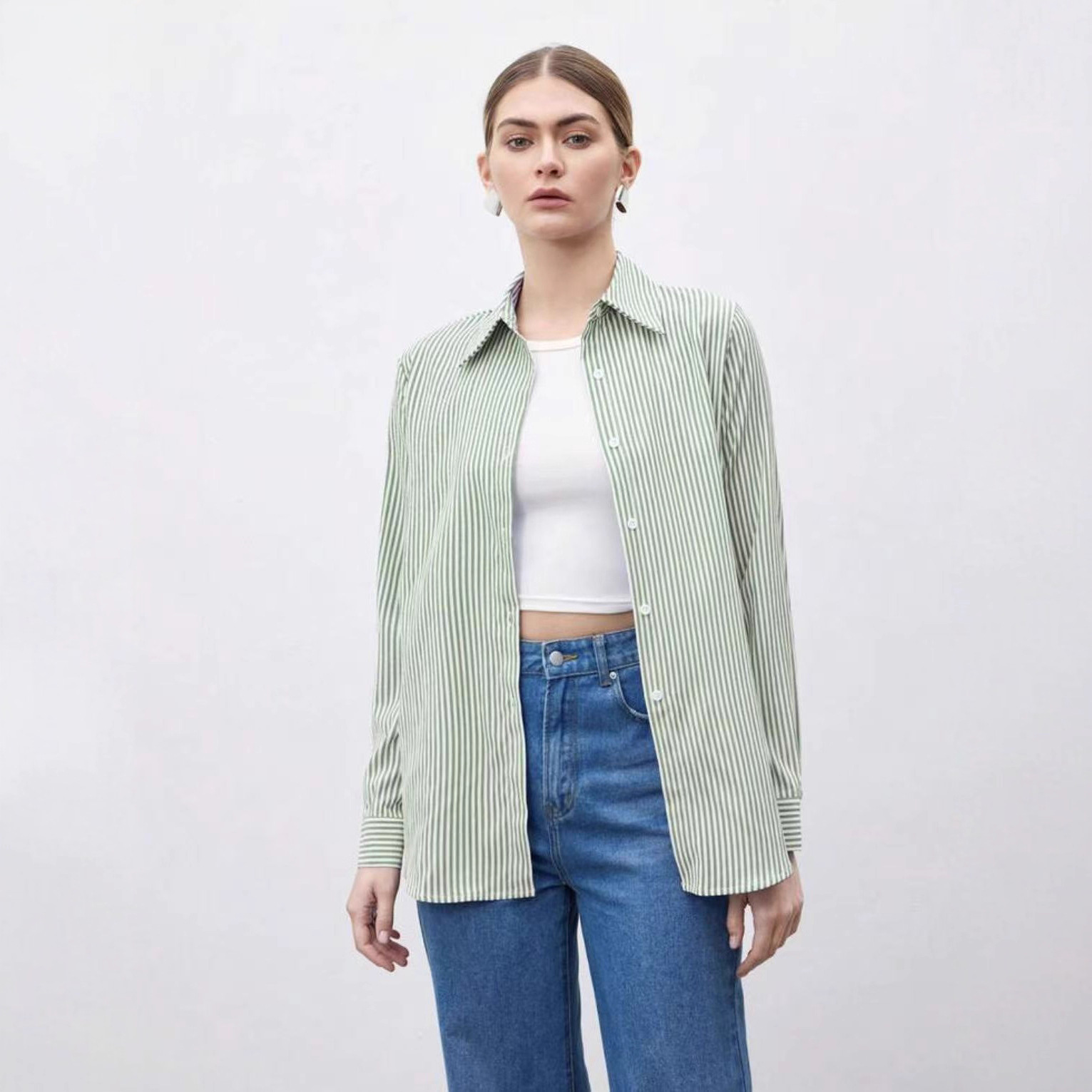 Women's Casual Single-breasted Striped Long-sleeved Shirt