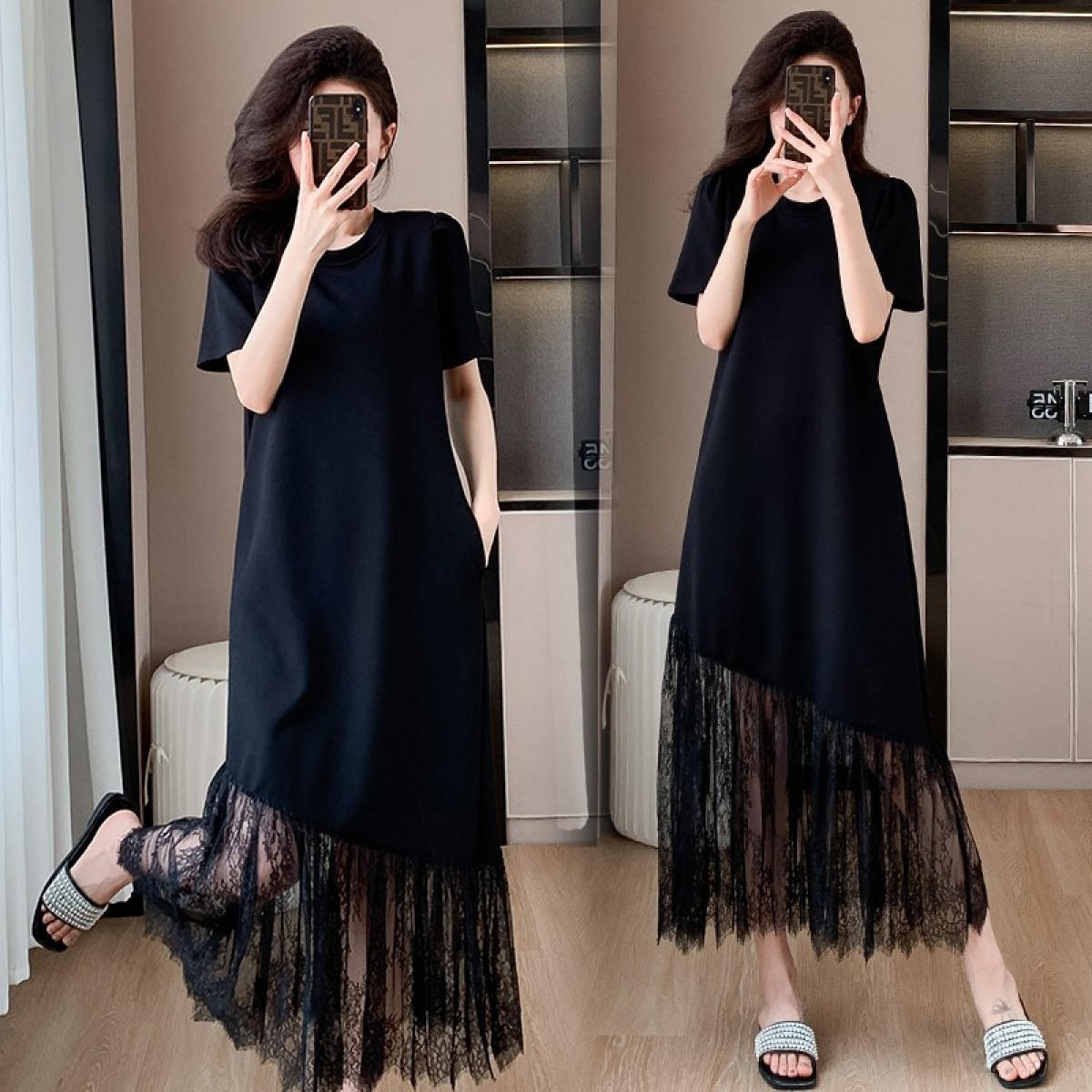 Womens Casual Slim-Fit Lace Short-Sleeve Dress
