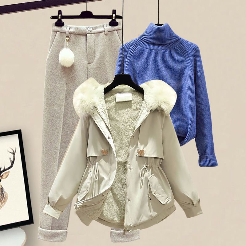 Color: beige coat, black coat, white sweater apricot pants, pink sweater apricot pants, yellow sweater apricot pants, red sweater apricot pants, white sweater beige coat apricot pants, khaki sweater white coat apricot pants, pink sweater beige coat apricot pants, red sweater beige coat apricot pants, black sweater beige coat apricot pants, white sweater black coat apricot pants, khaki sweater black coat apricot pants, pink sweater black coat apricot pants, black sweater black coat apricot pants, red sweater black coat apricot pants, white sweater, pink sweater, a khaki sweater, red sweater, yellow sweater, apricot pants