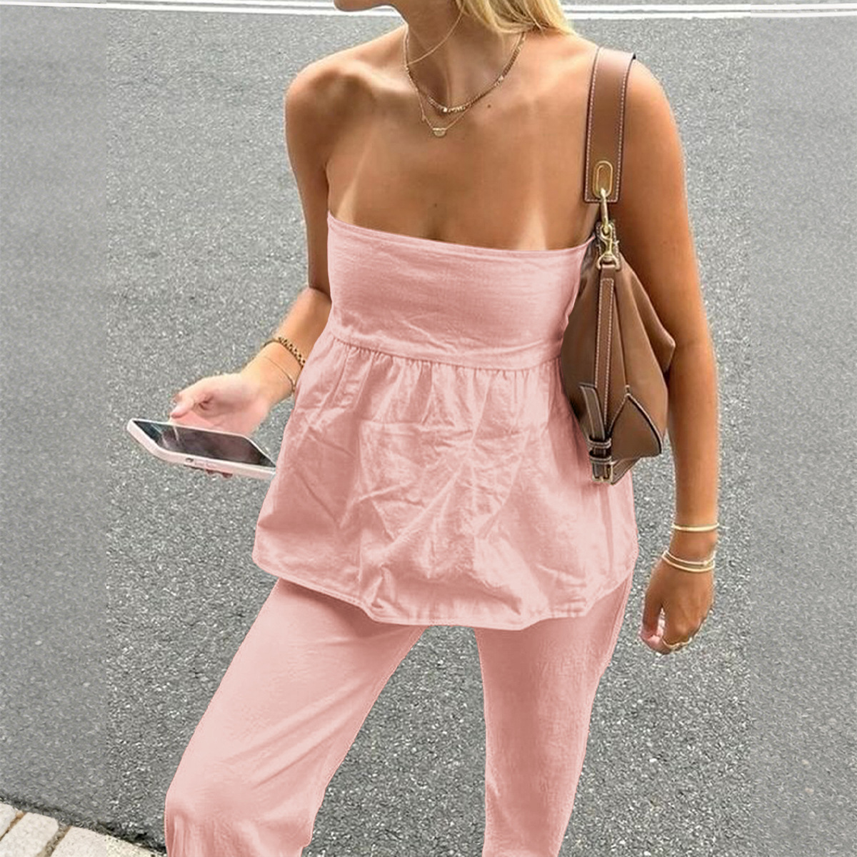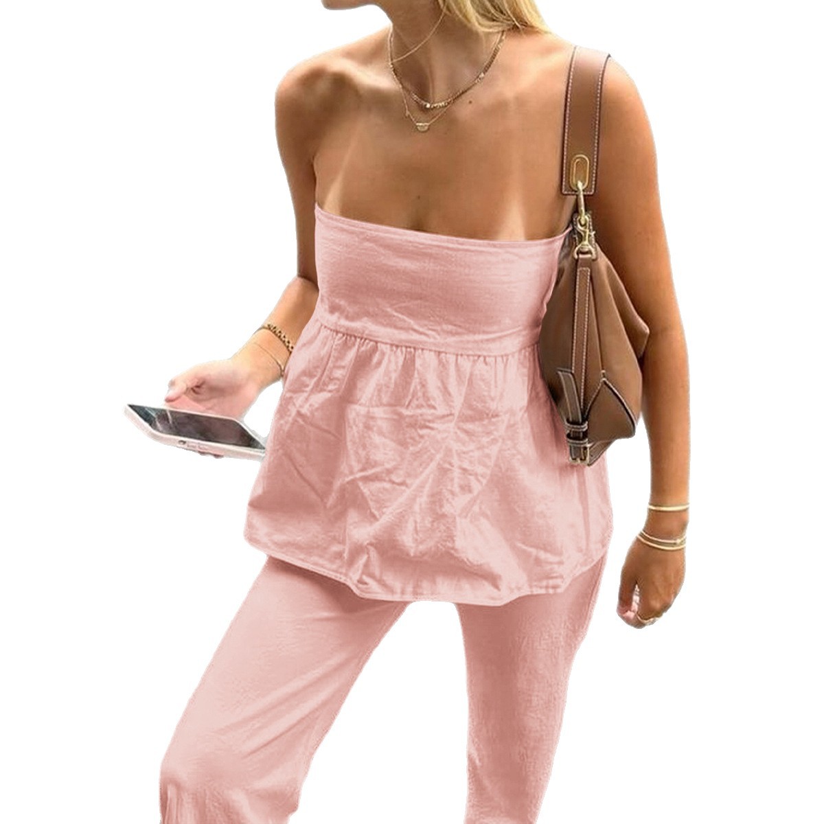 Women's Casual Tube Top Straight-leg Trousers Suit