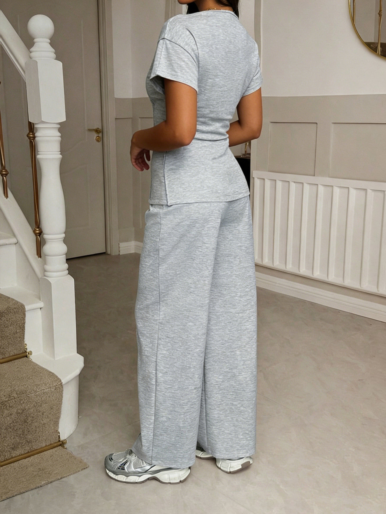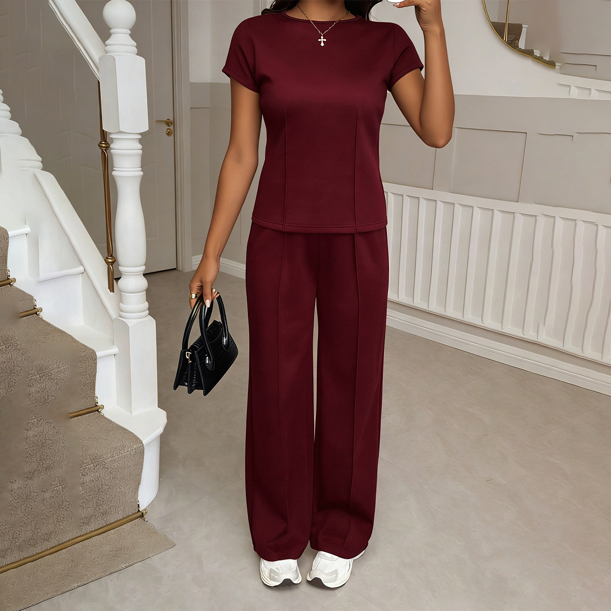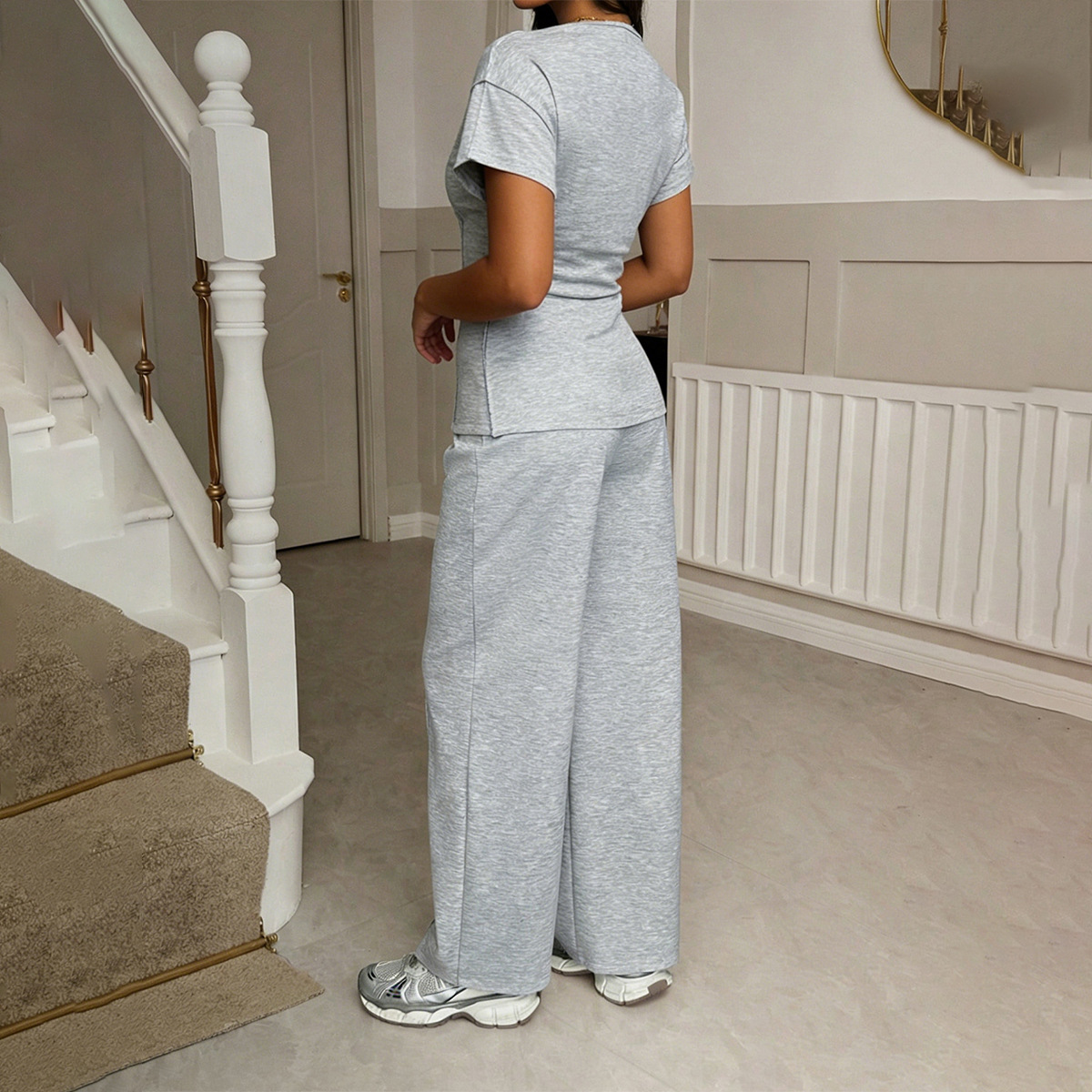 Womens Casual Two-Piece Set Short-Sleeve T-Shirt And Long Pants