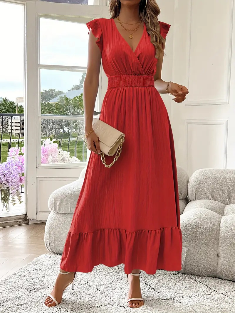 Women's Casual Versatile V-neck Short-sleeve Maxi Dress