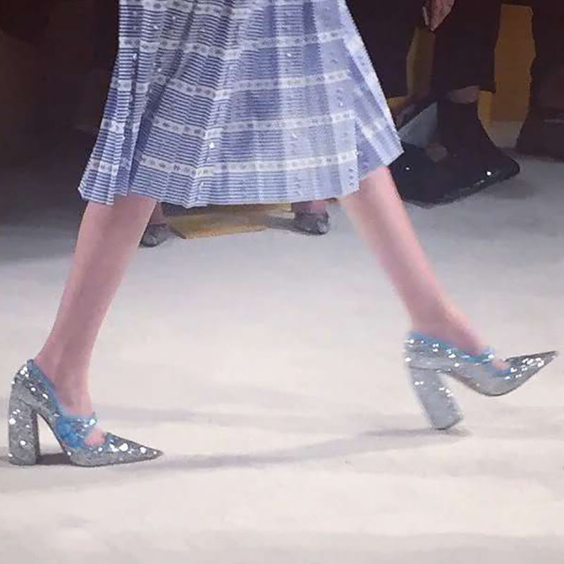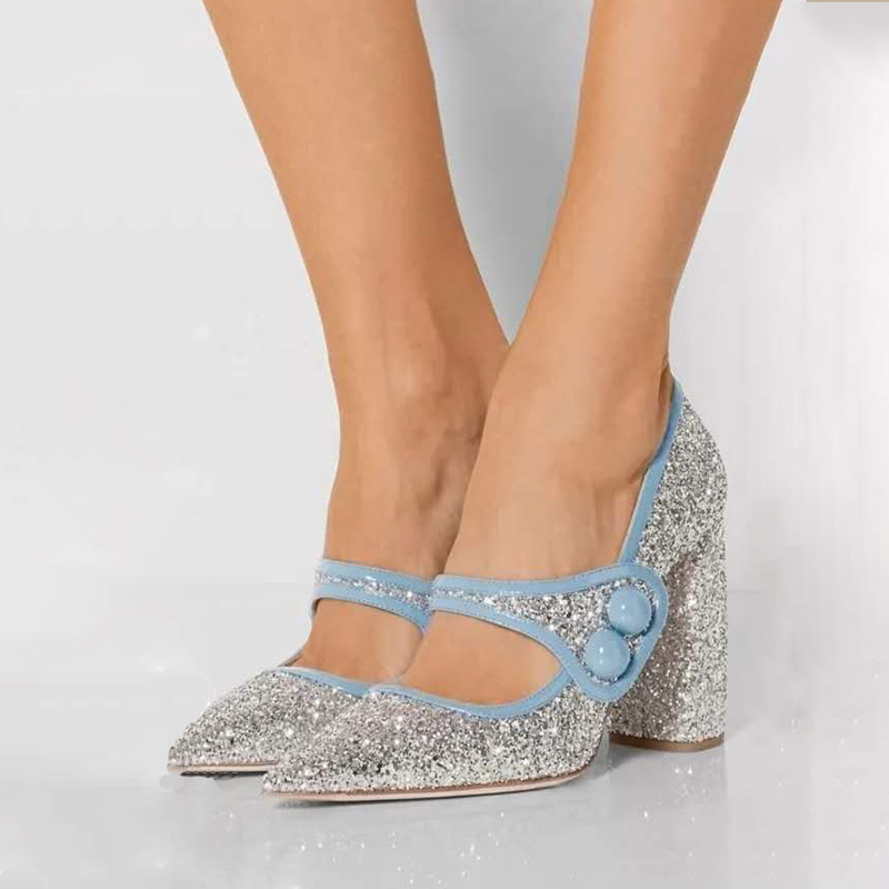 Women's Catwalk Style French Pointed Toe Silver Sequined High Heels
