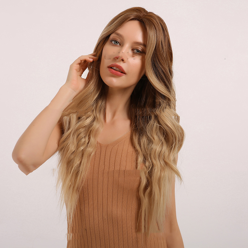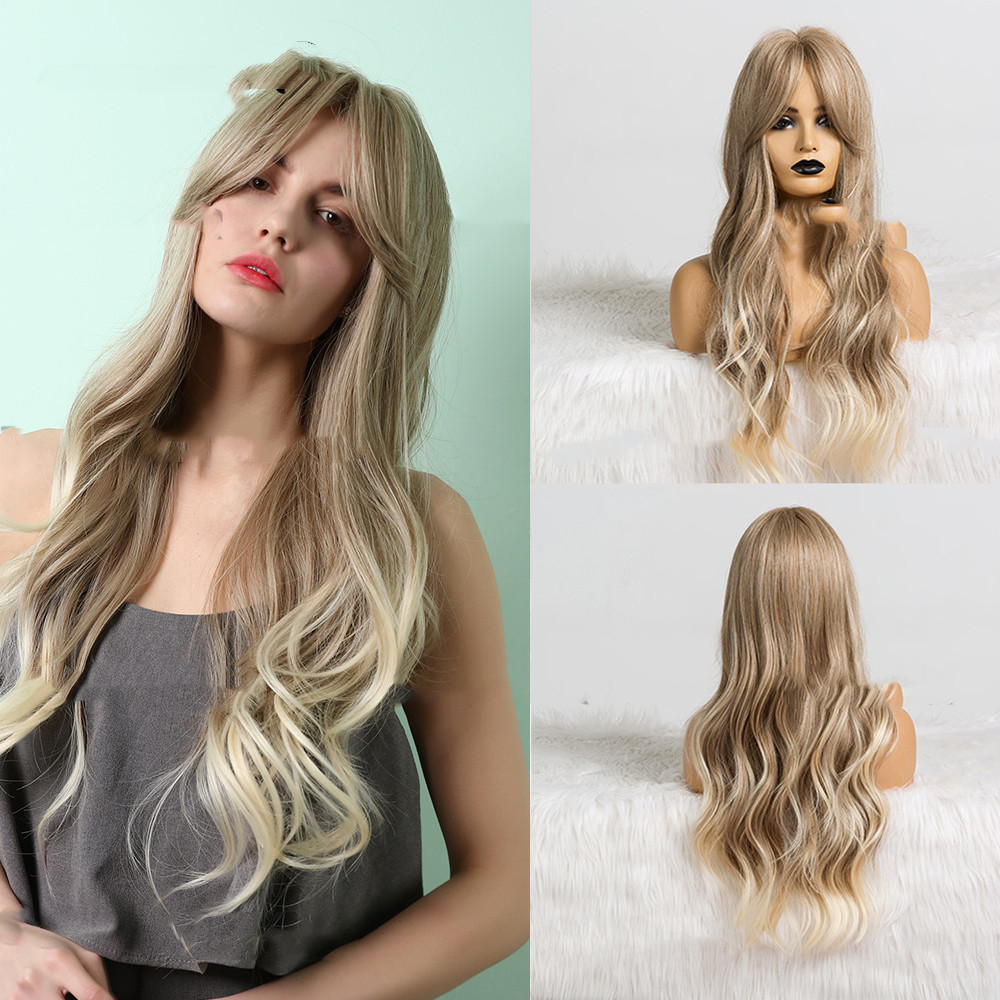 Women's Chemical Fiber Wig, Gradient Gold On The Top Of The Head