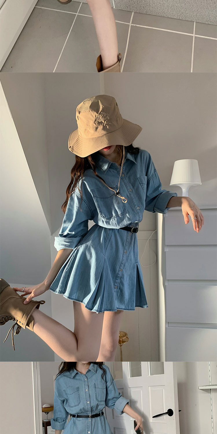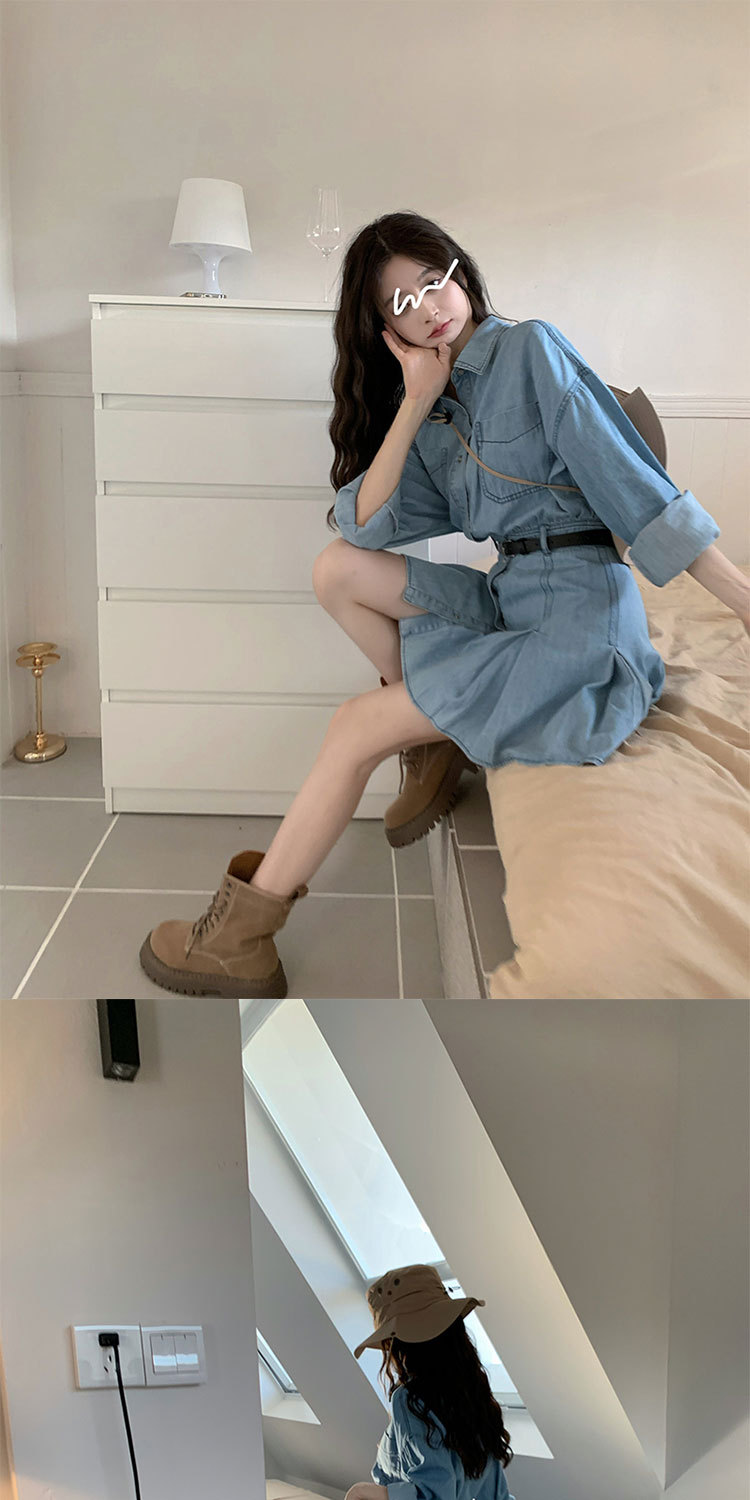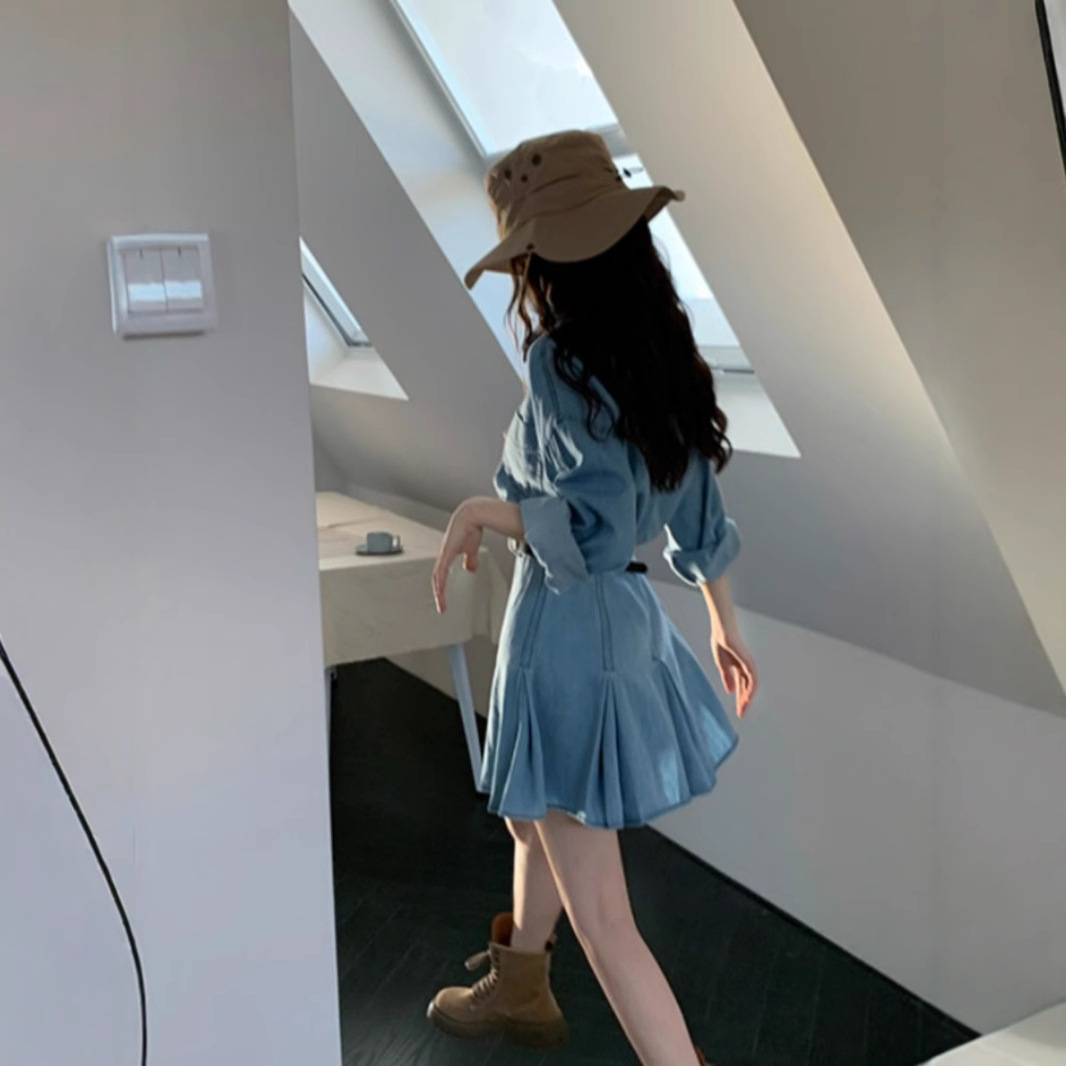 Womens Chic Casual Denim Shirt Dress