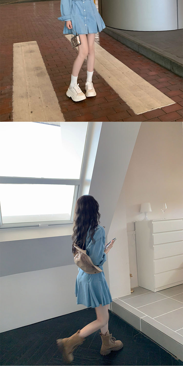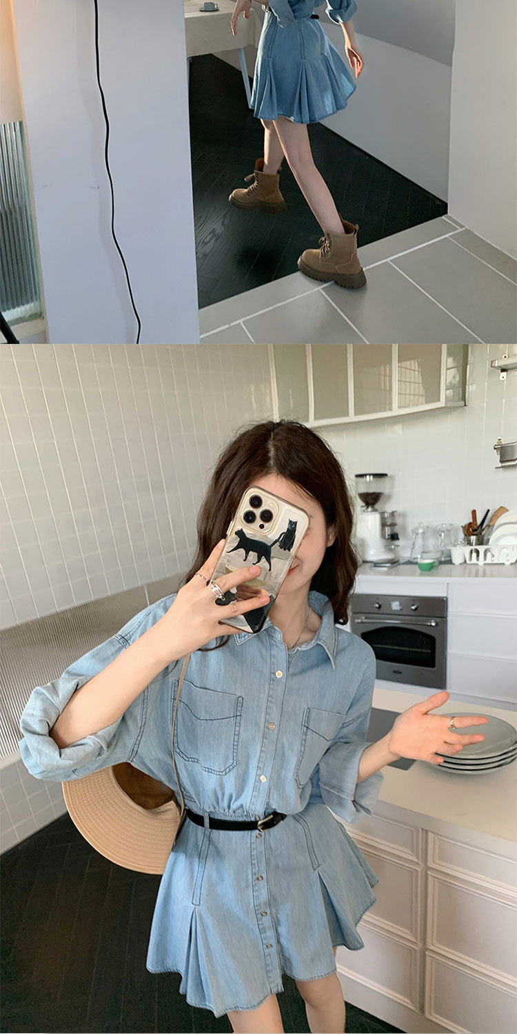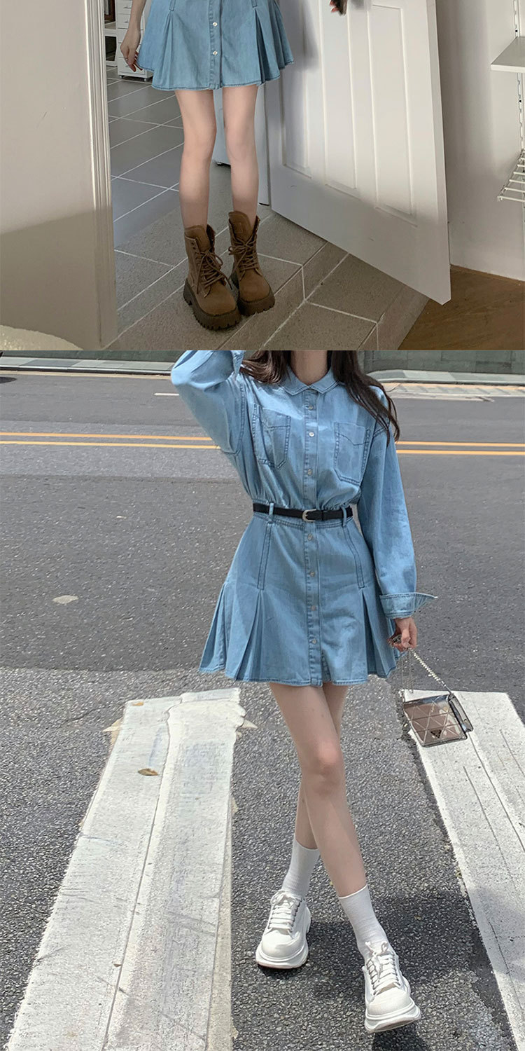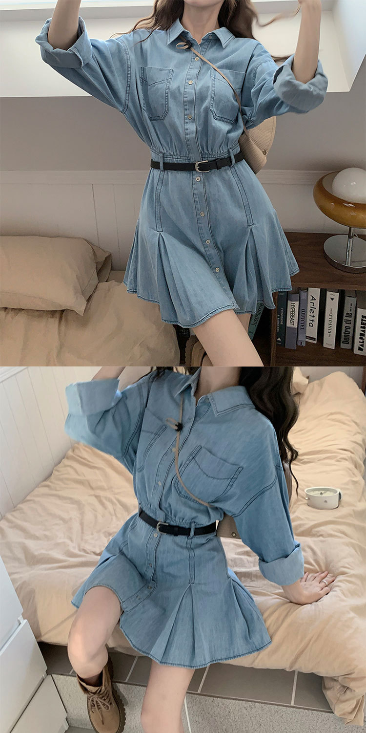 Womens Chic Casual Denim Shirt Dress