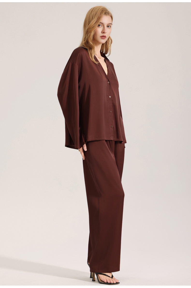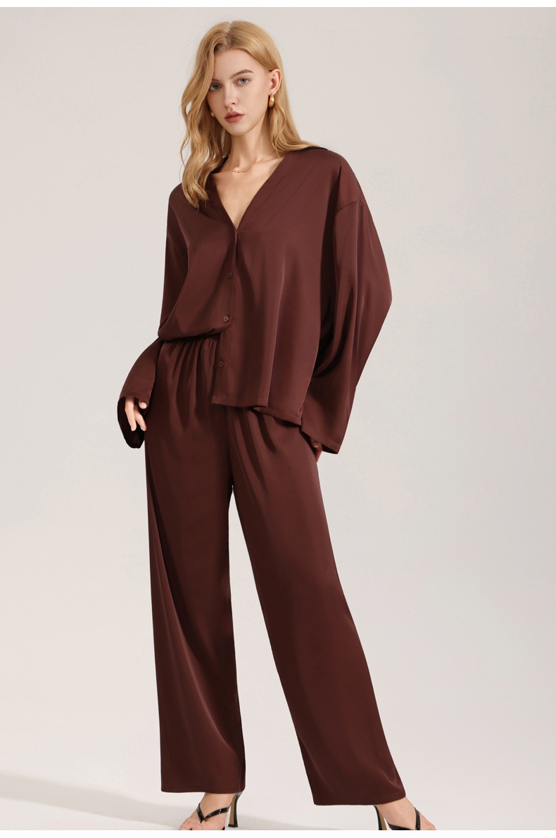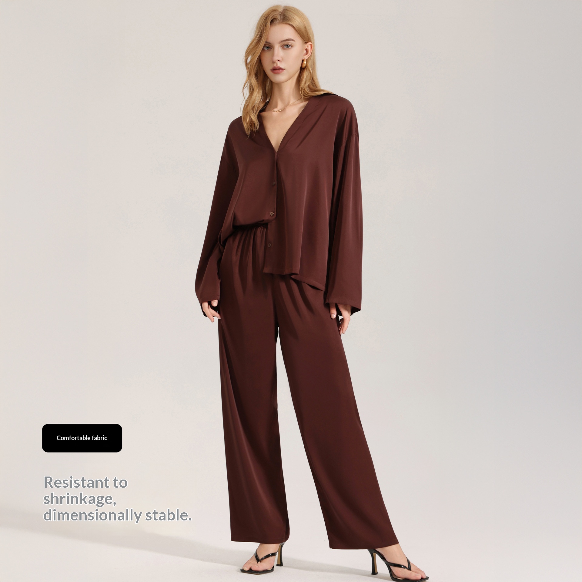 Womens Chiffon Pajamas Casual Long Sleeve Loungewear Set