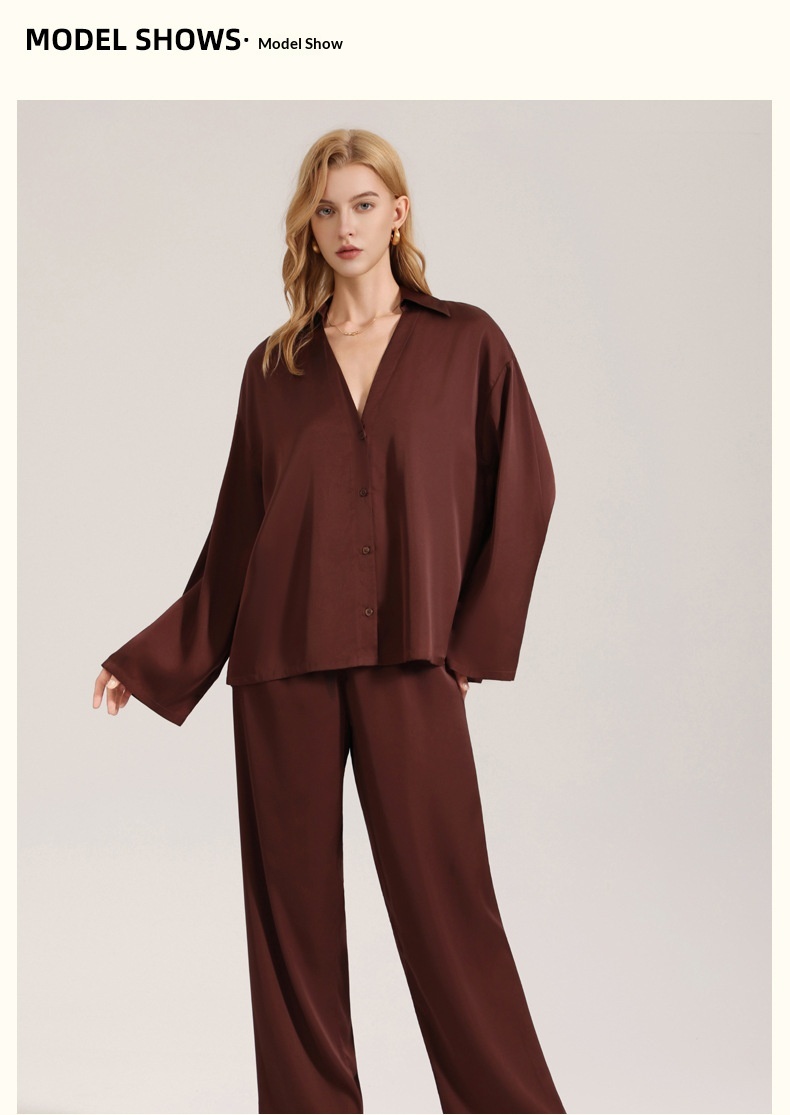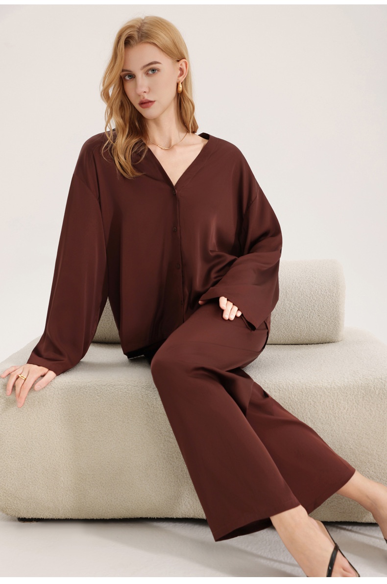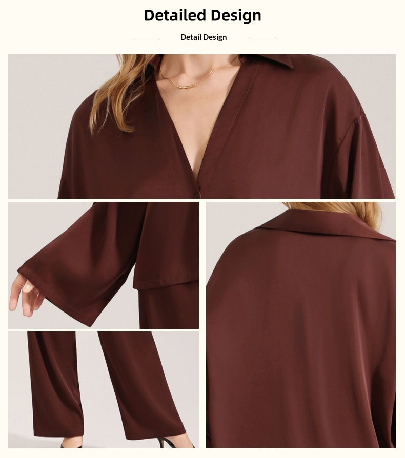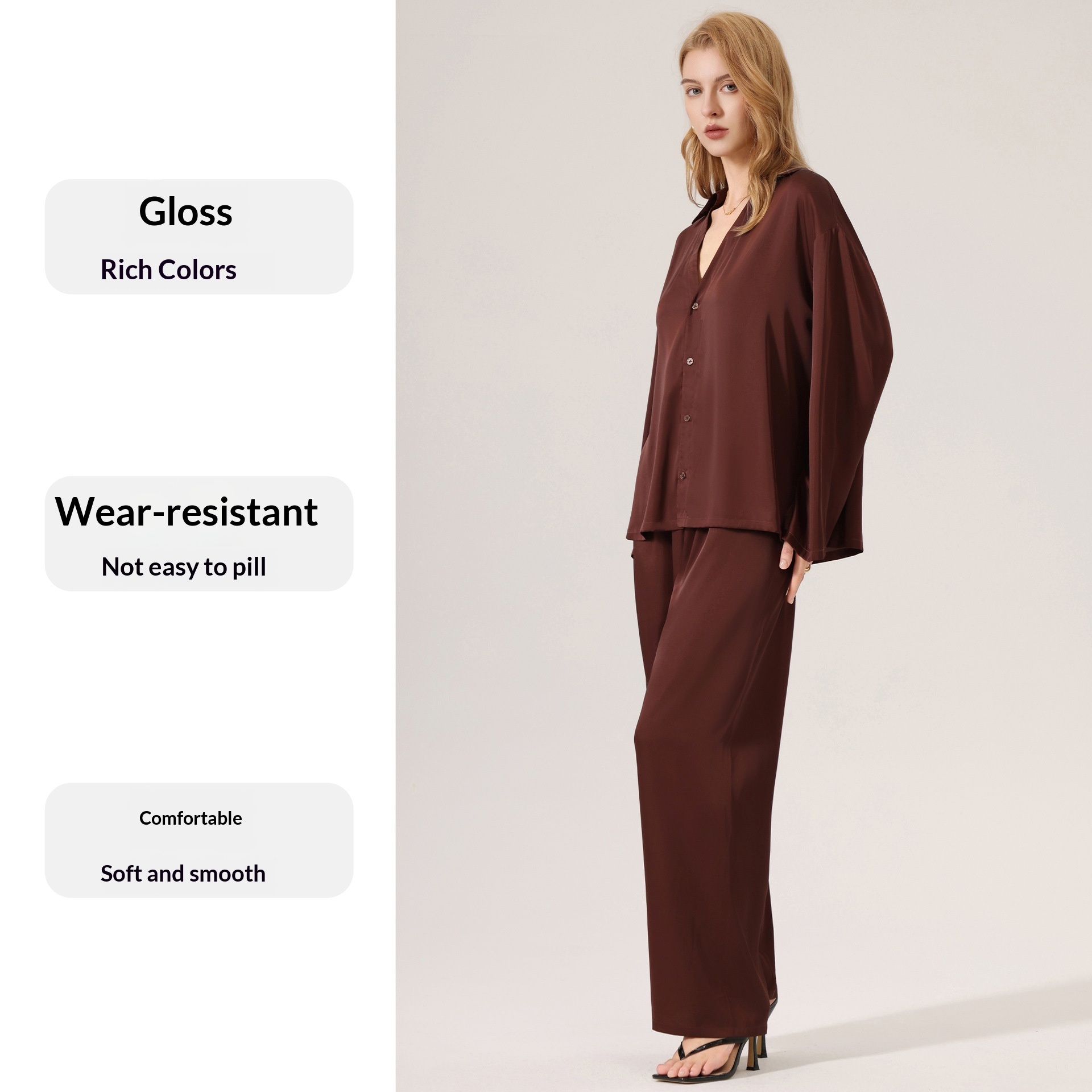 Womens Chiffon Pajamas Casual Long Sleeve Loungewear Set
