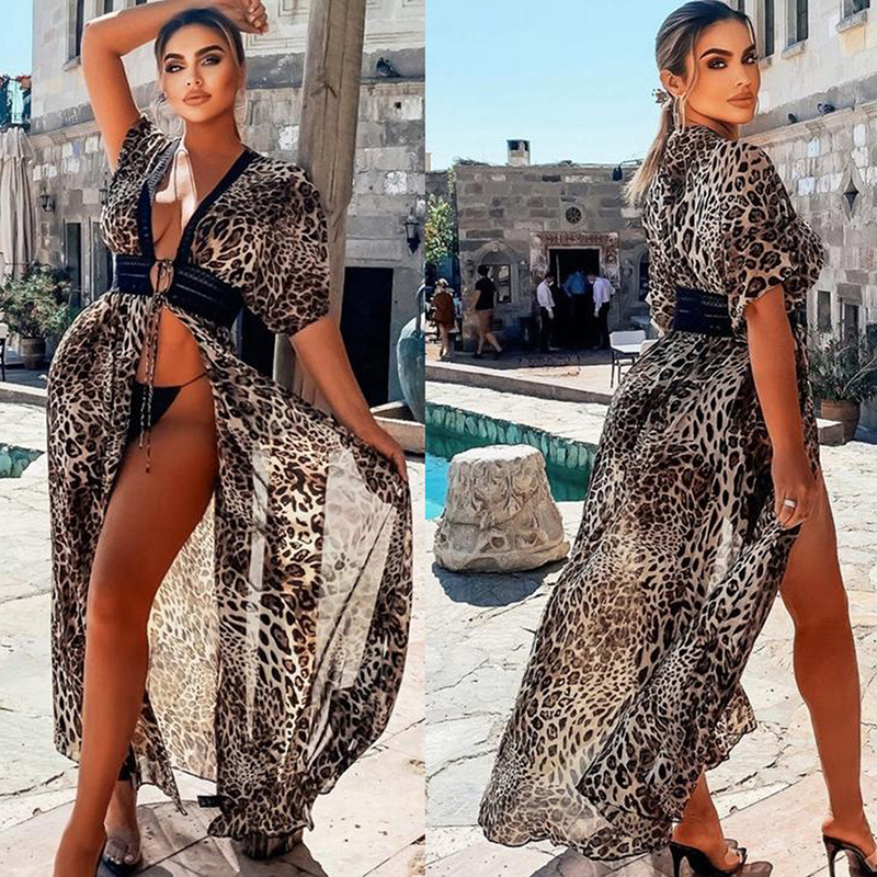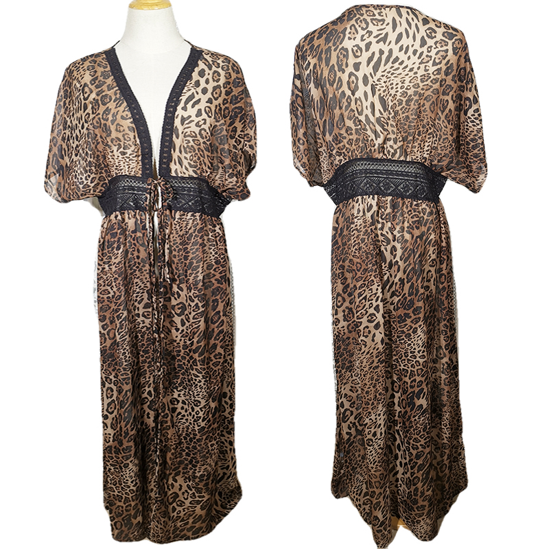 Color: Chiffon Leopard Point (ZS638-5), colorful butterfly flowers, blue flowers, banana leaves, feather positioning flowers