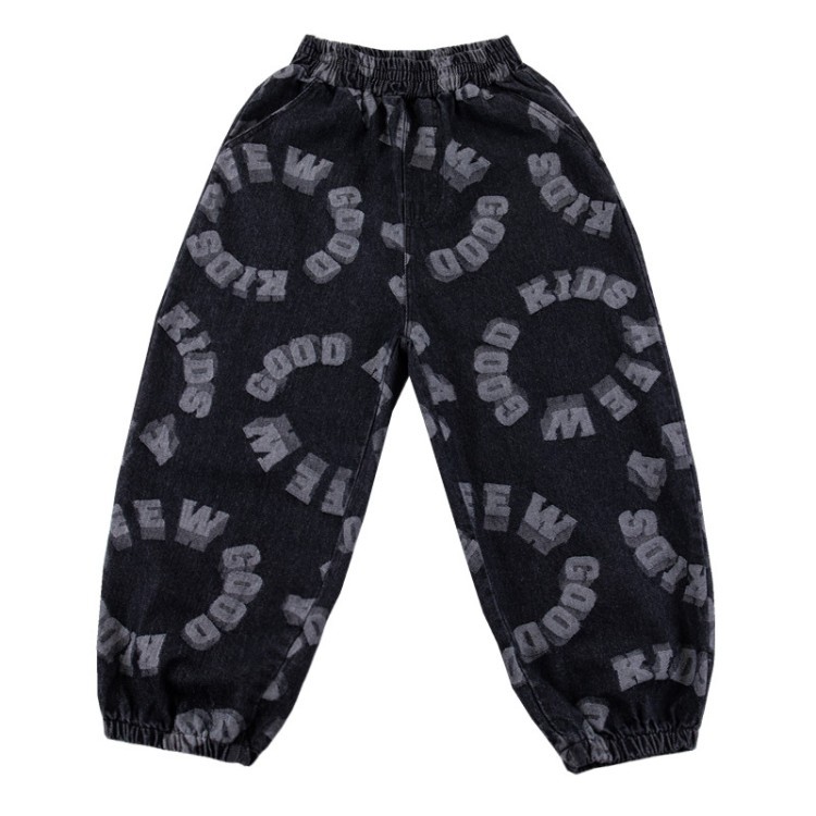 Color: black circle letter trousers, blue circle letter trousers, blue love trousers, blue circle letter wide-leg pants, blue square denim wide-leg pants