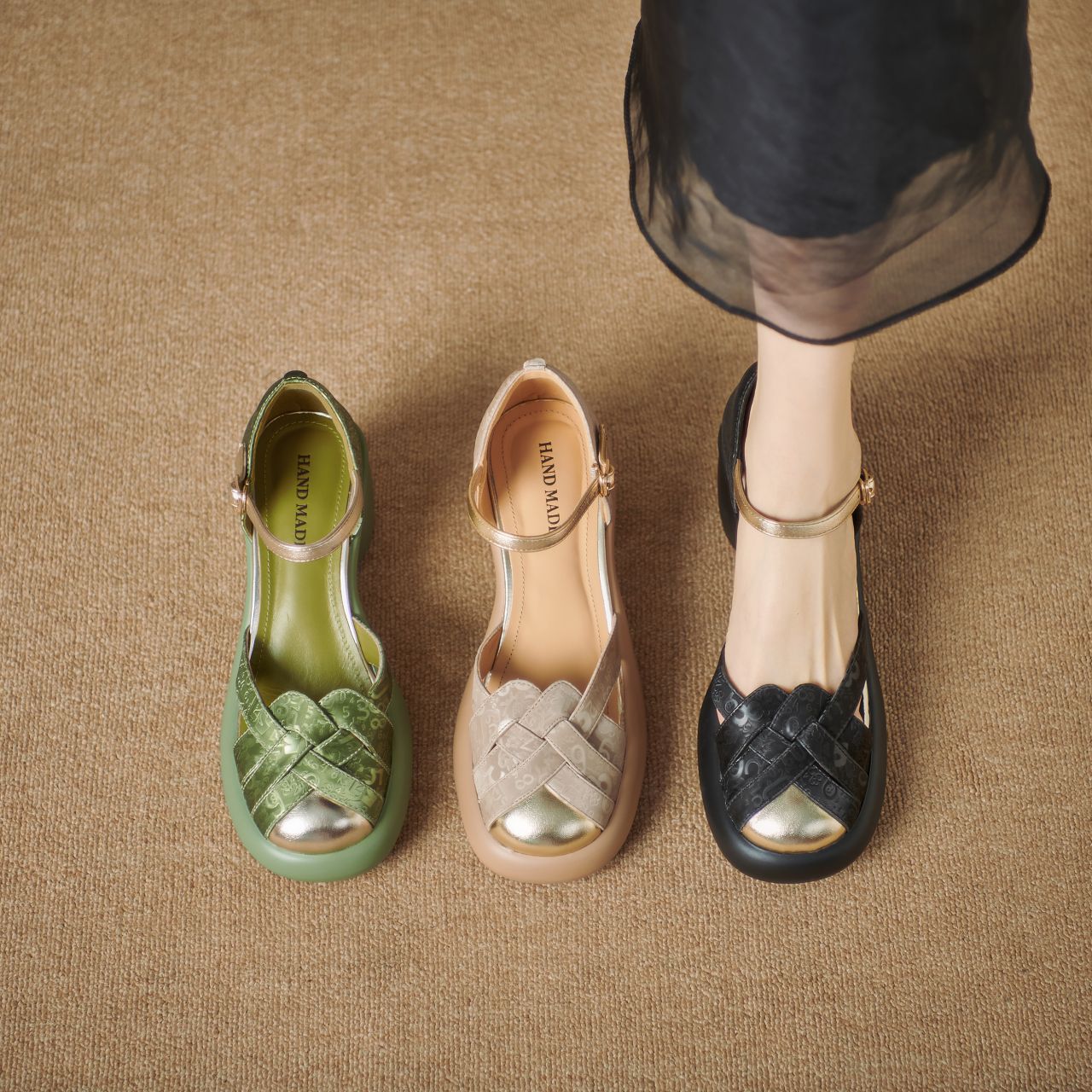 Color: green, black, apricot