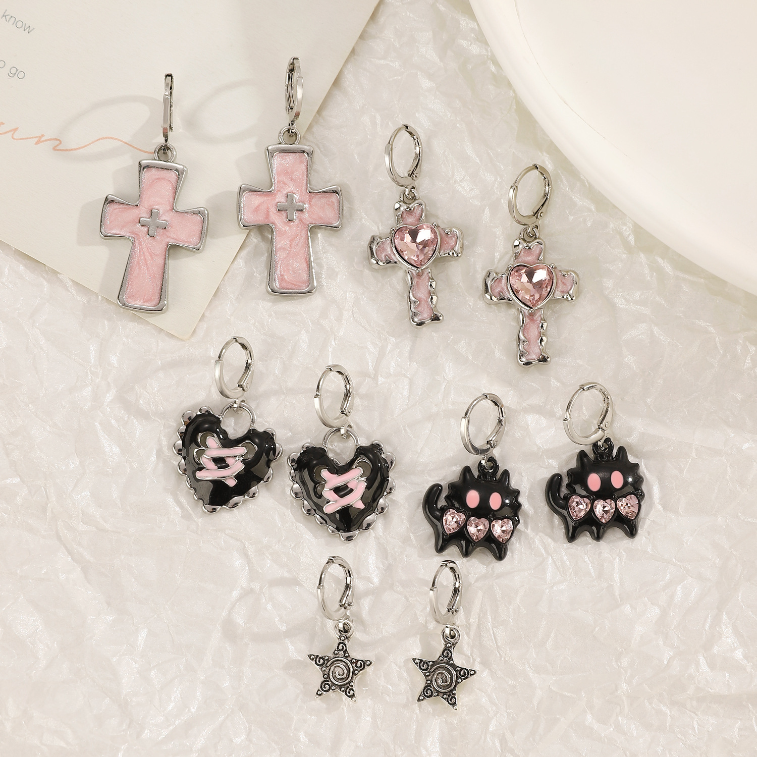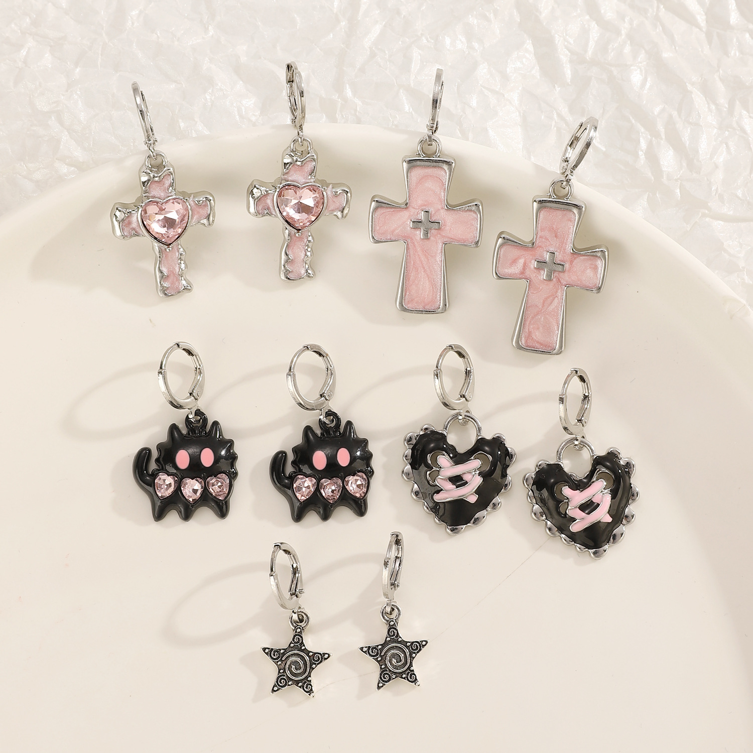 Color: 01 White K liquid cross N-766,02 White K peach heart N-765,03 White K cross N-764,04 bright black cat N-763,05 antique silver XINGX N-762