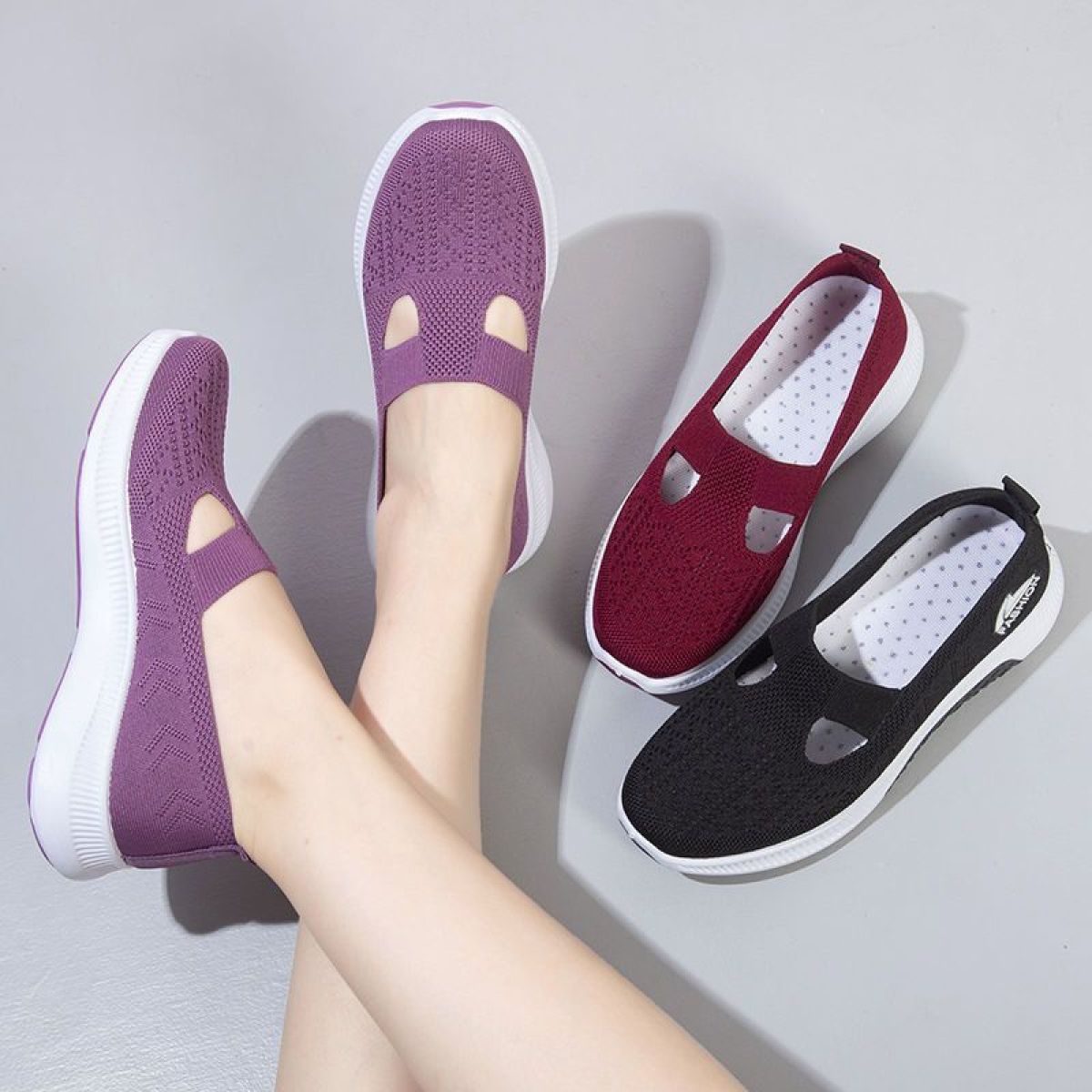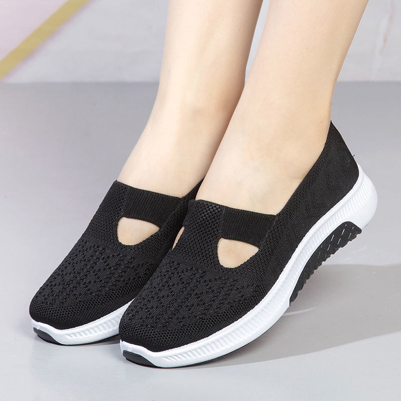 Women's Cloth Shoes Spring Style Soft Bottom Women's Casual Pumps Fly Woven Mesh Mom Shoes
