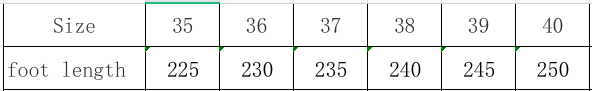 Size: 36, 37, 38, 39, 40, 41