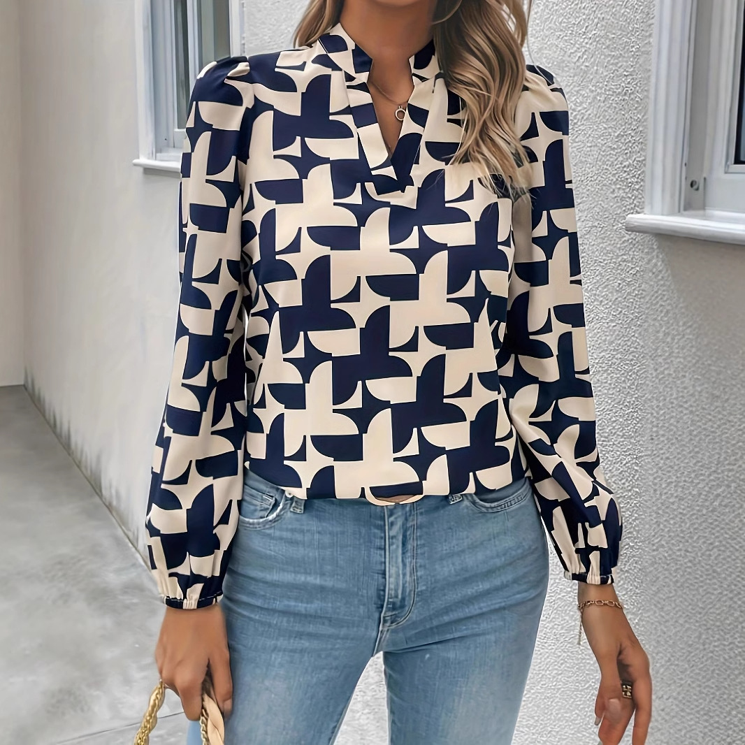 Women's Clothing Commuting Fashion V-neck Printed Pullover