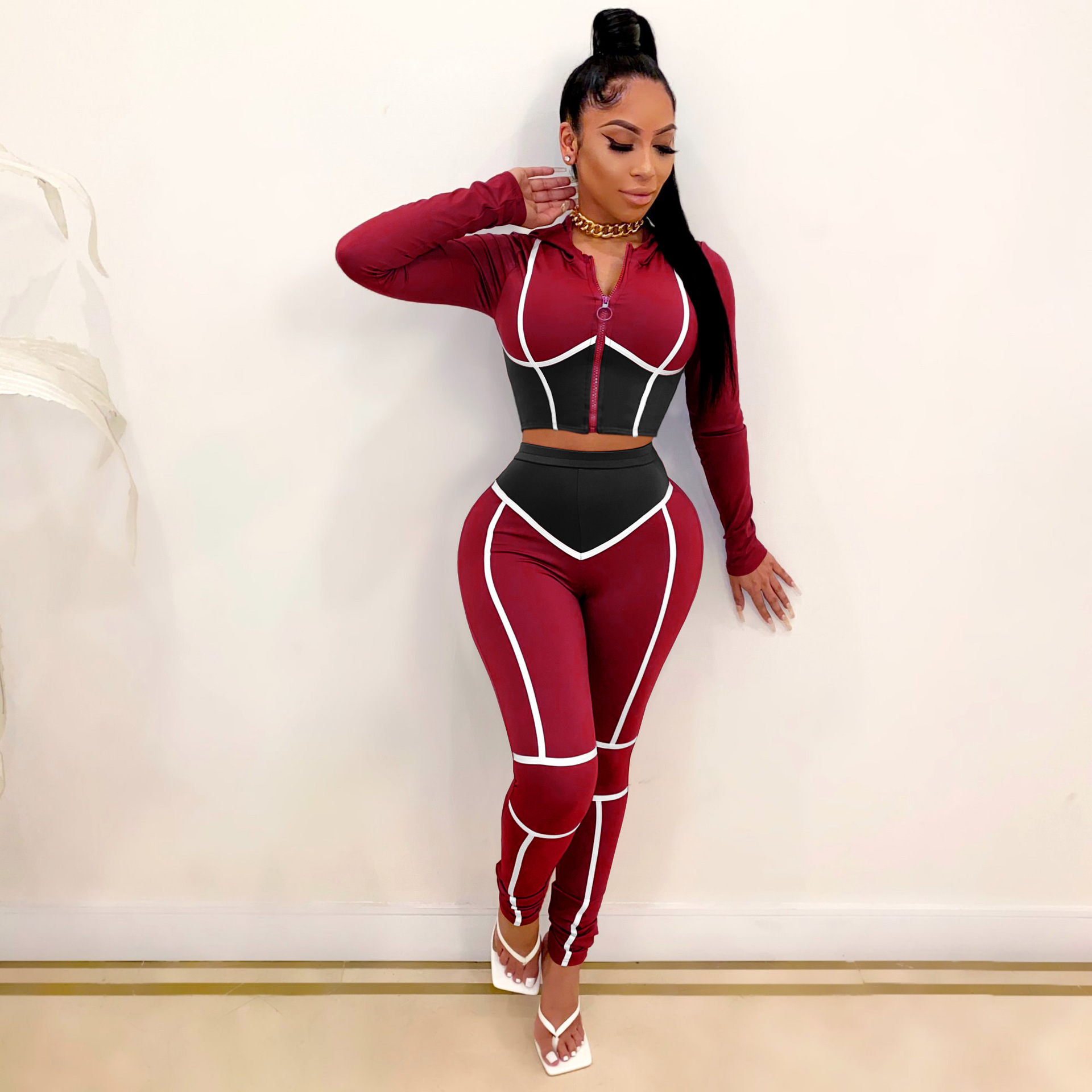 Women's Clothing Fashion Yoga Clothes Contrast Color Tight Two-piece Sports Suit