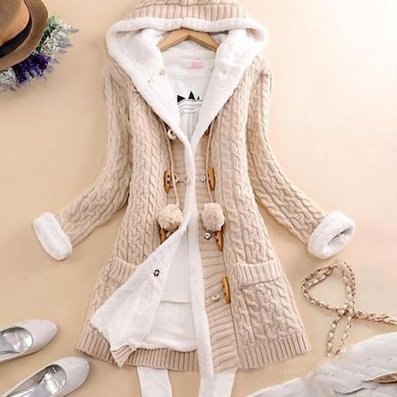 Women's Clothing With Warm Plush Cardigan Horn Button