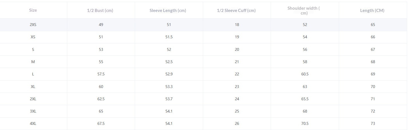 Sizes: XXS, XS, S, M, L, XL, XXL, XXXL, 4XL, 5XL
