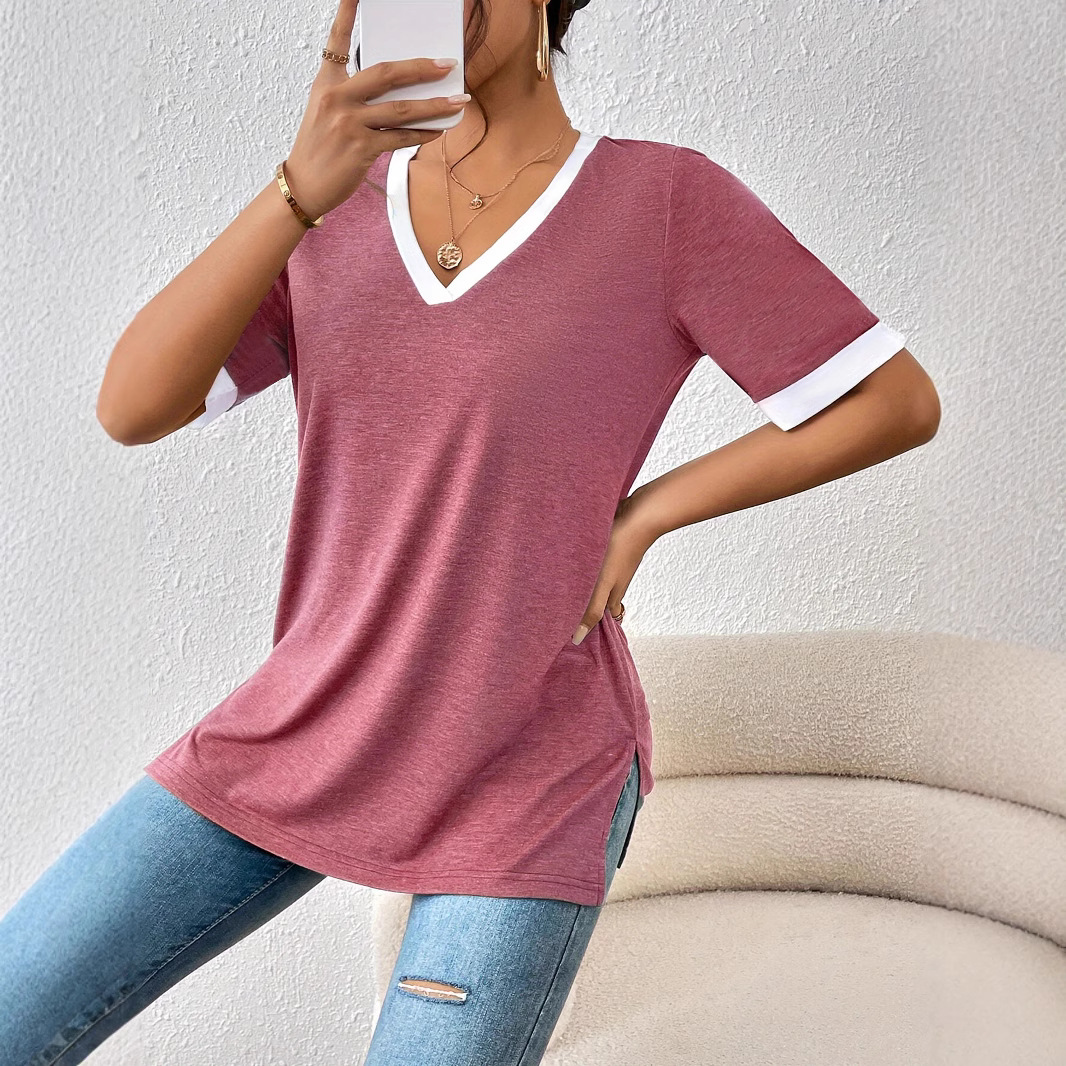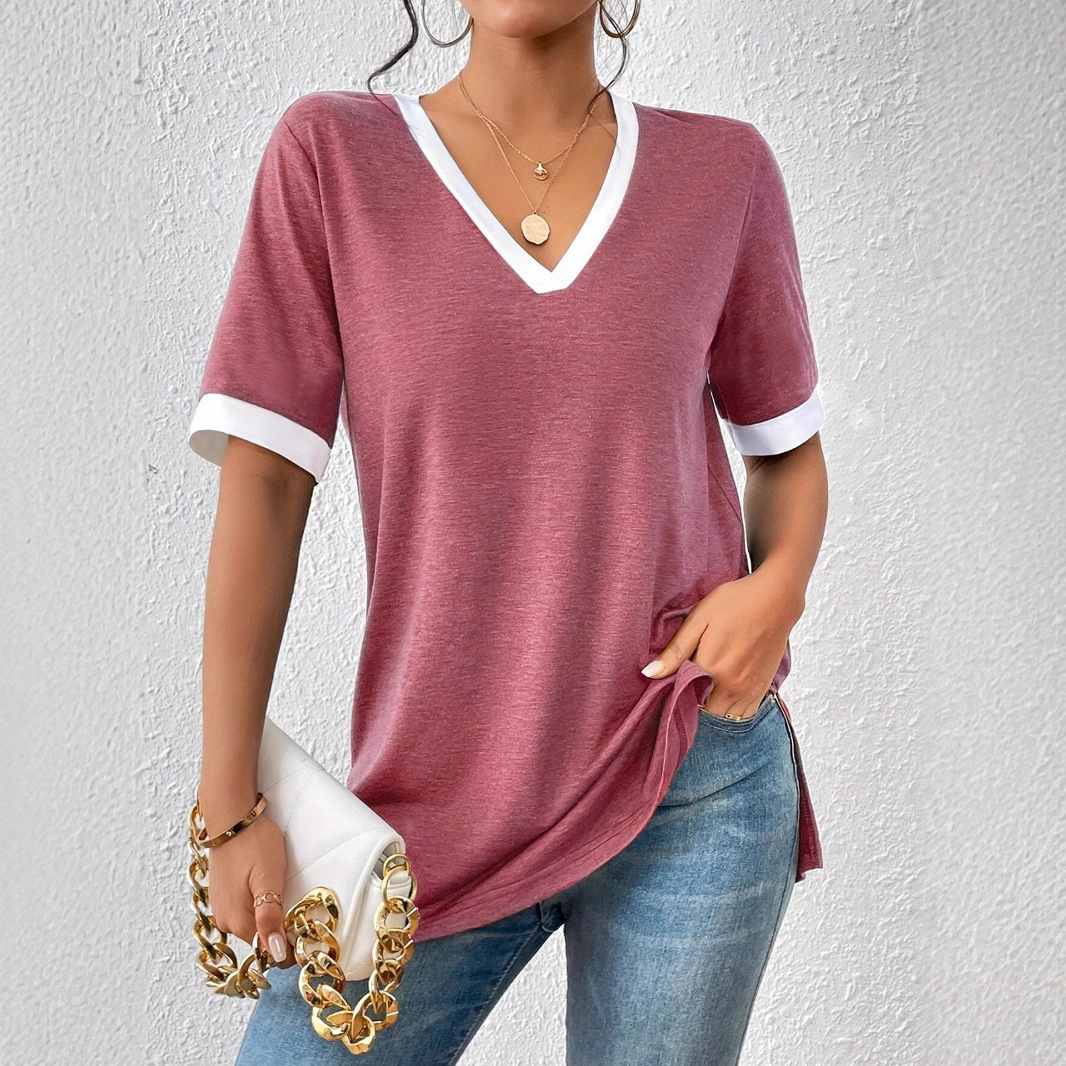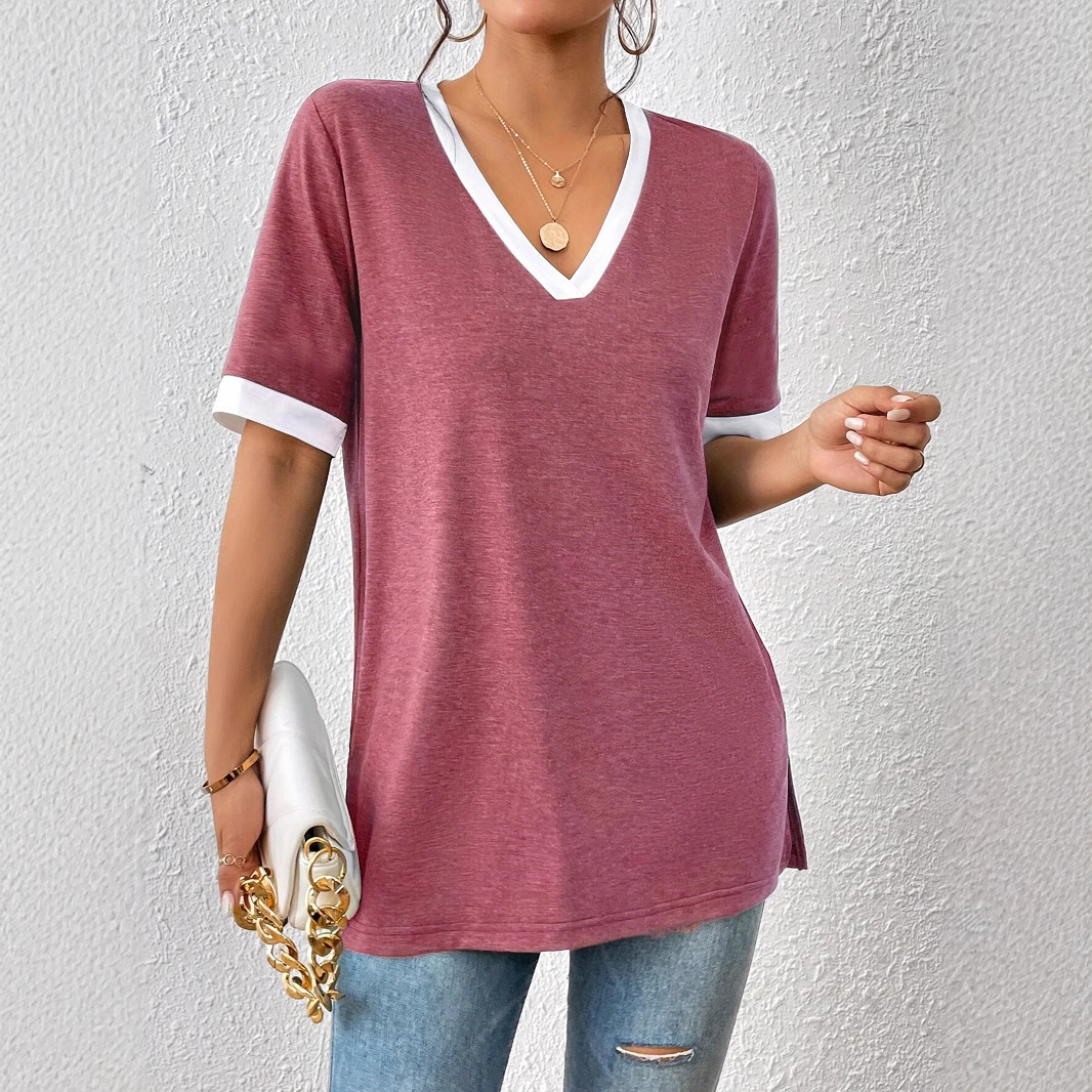 Women's Color Matching Short-sleeved Top