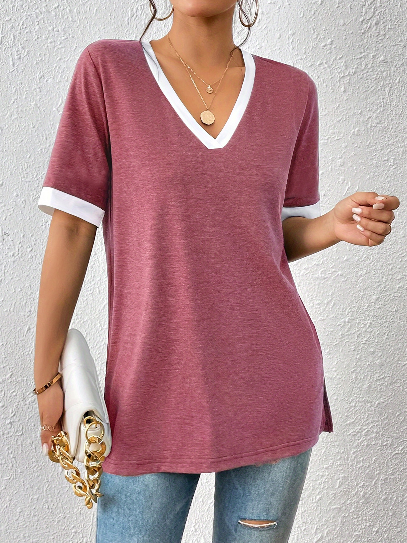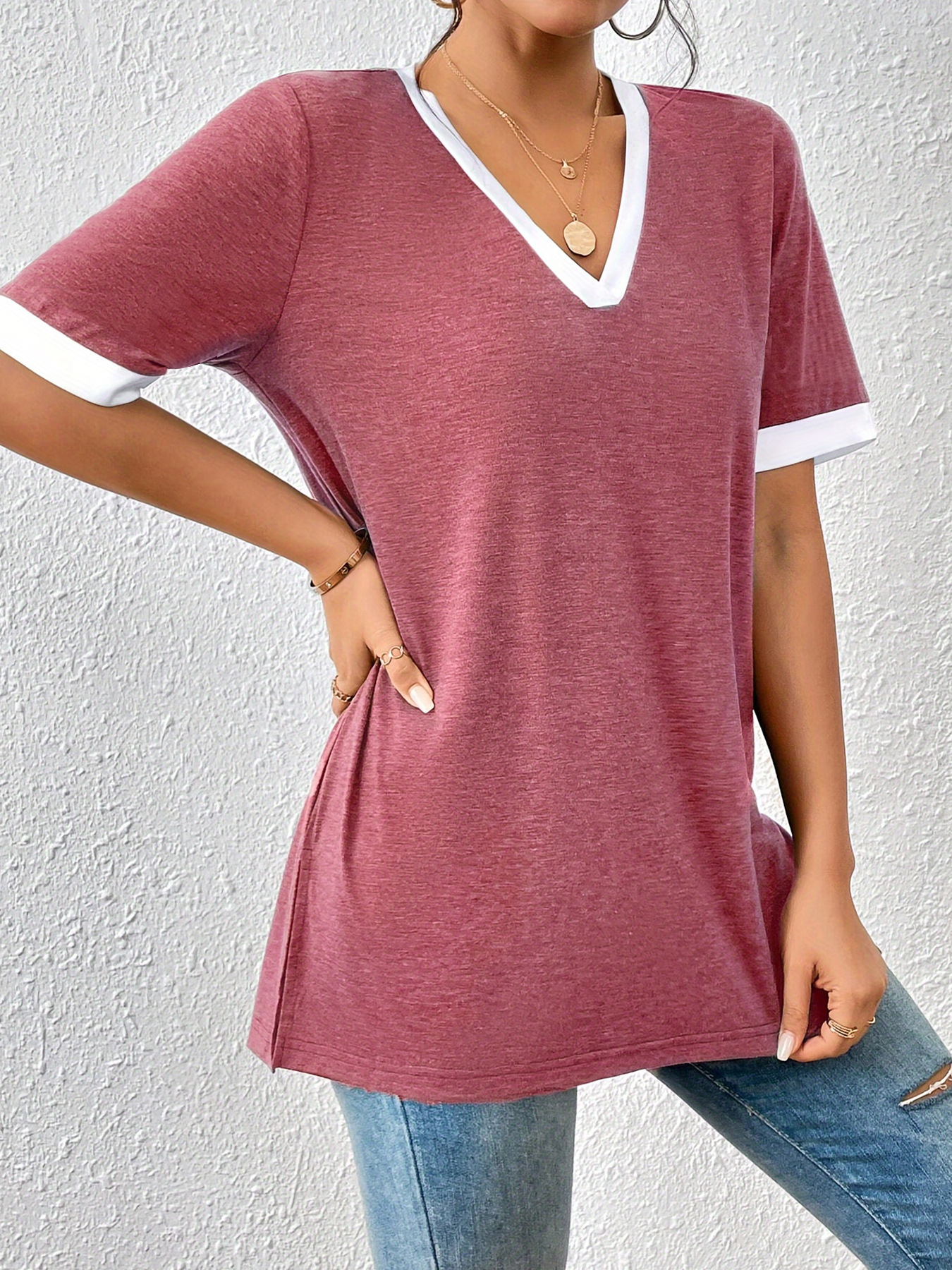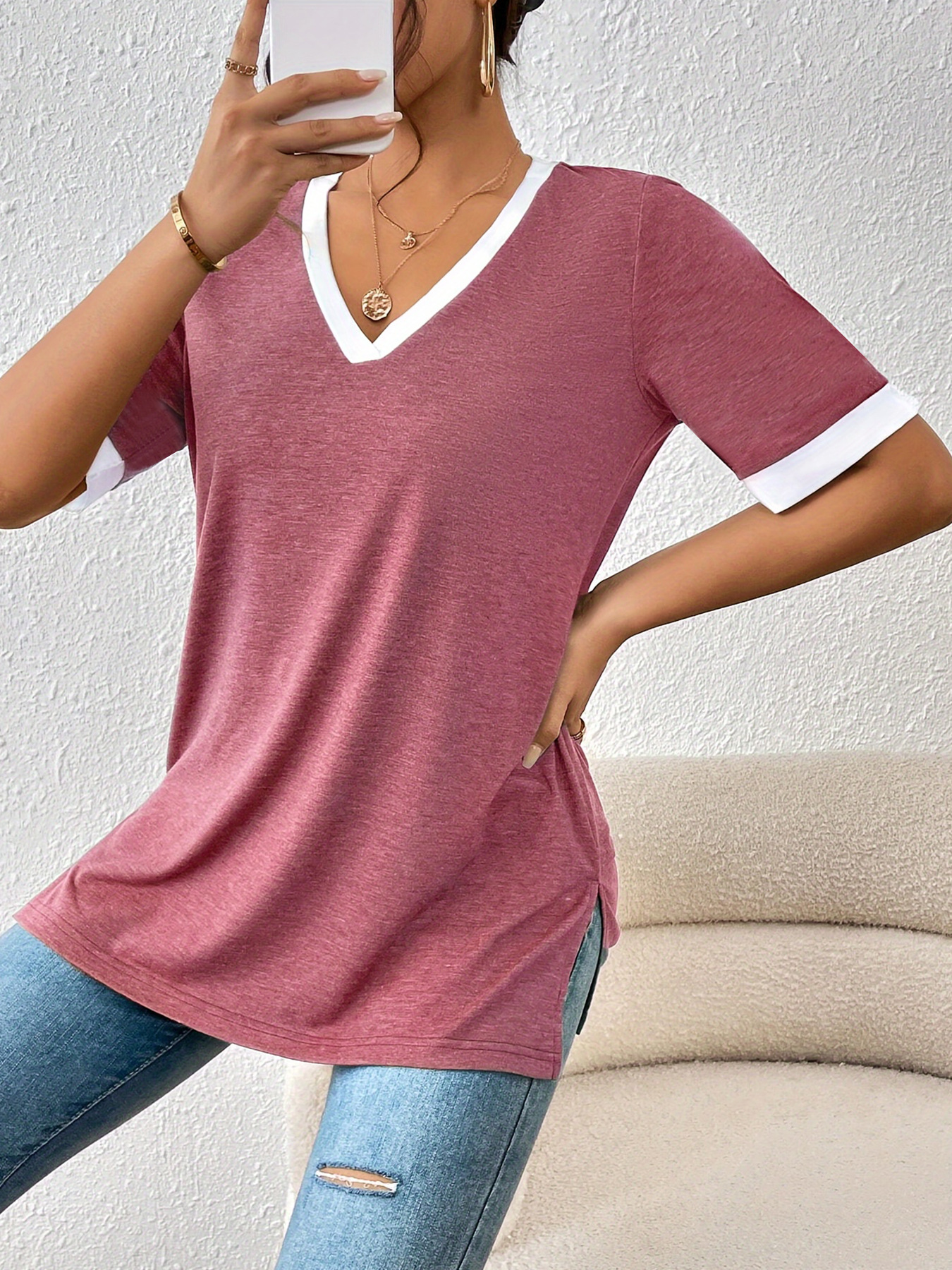 Women's Color Matching Short-sleeved Top