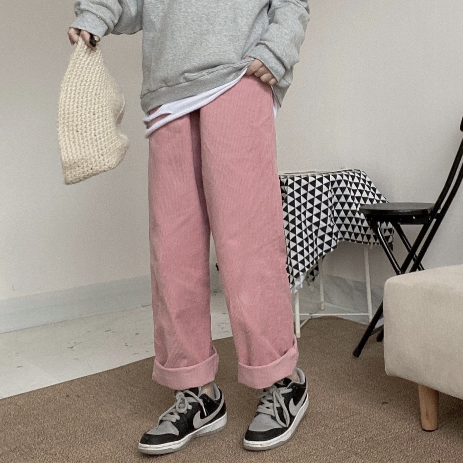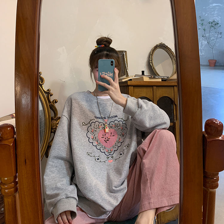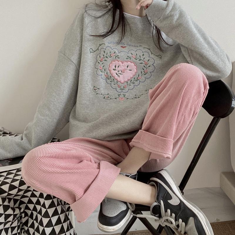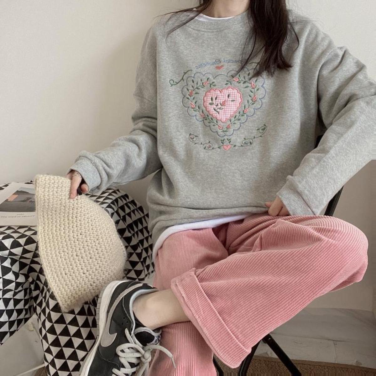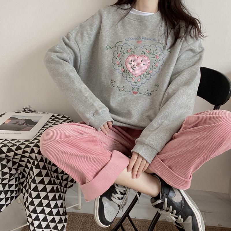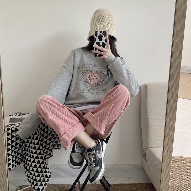Color: Regular pink wide-leg pants and trousers, gray love sweater plus velvet thick
