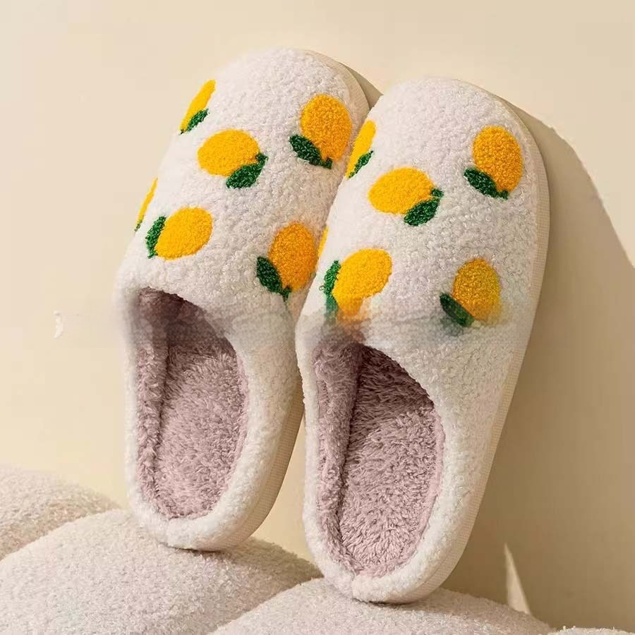 Women's Cotton Plush Lemon Slippers