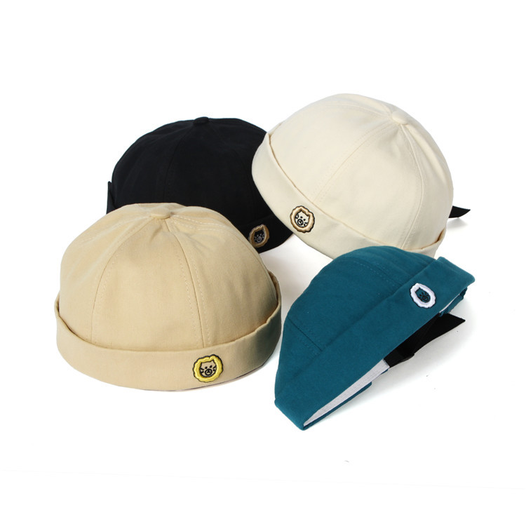 Juxian white peacock green landlord Hat Women's cotton soft top embroidery lion head Yupi hooligan melon skin hat men's fashion