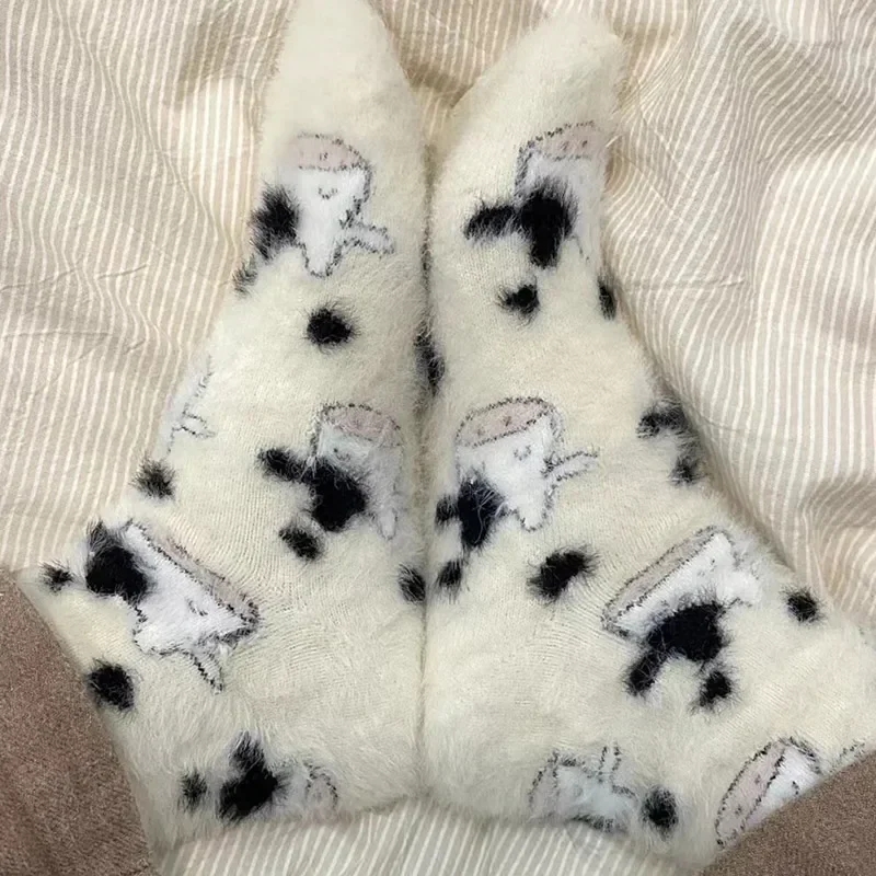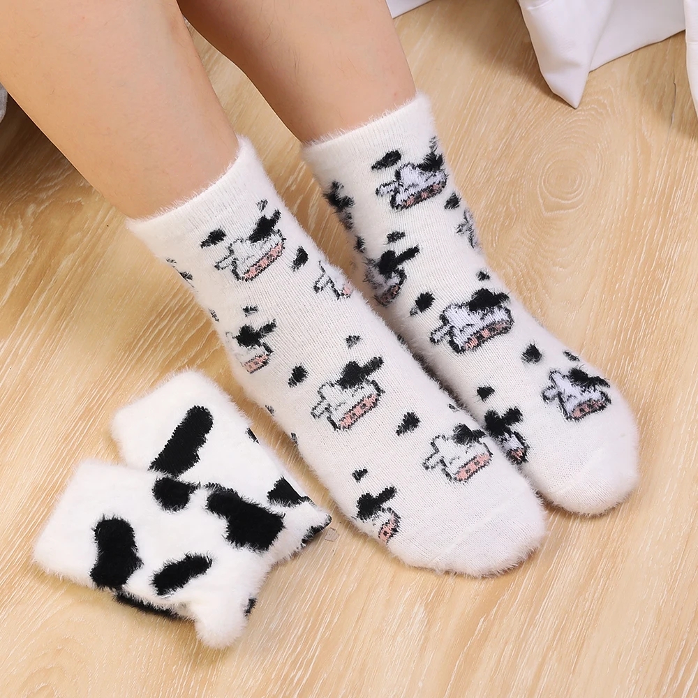 Women's Cow Spot Warm Floor Socks