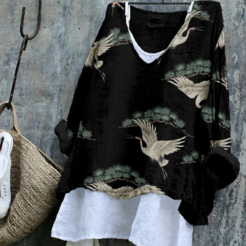 Women's Cranes & Pine Art Pattern Flowy Tunic