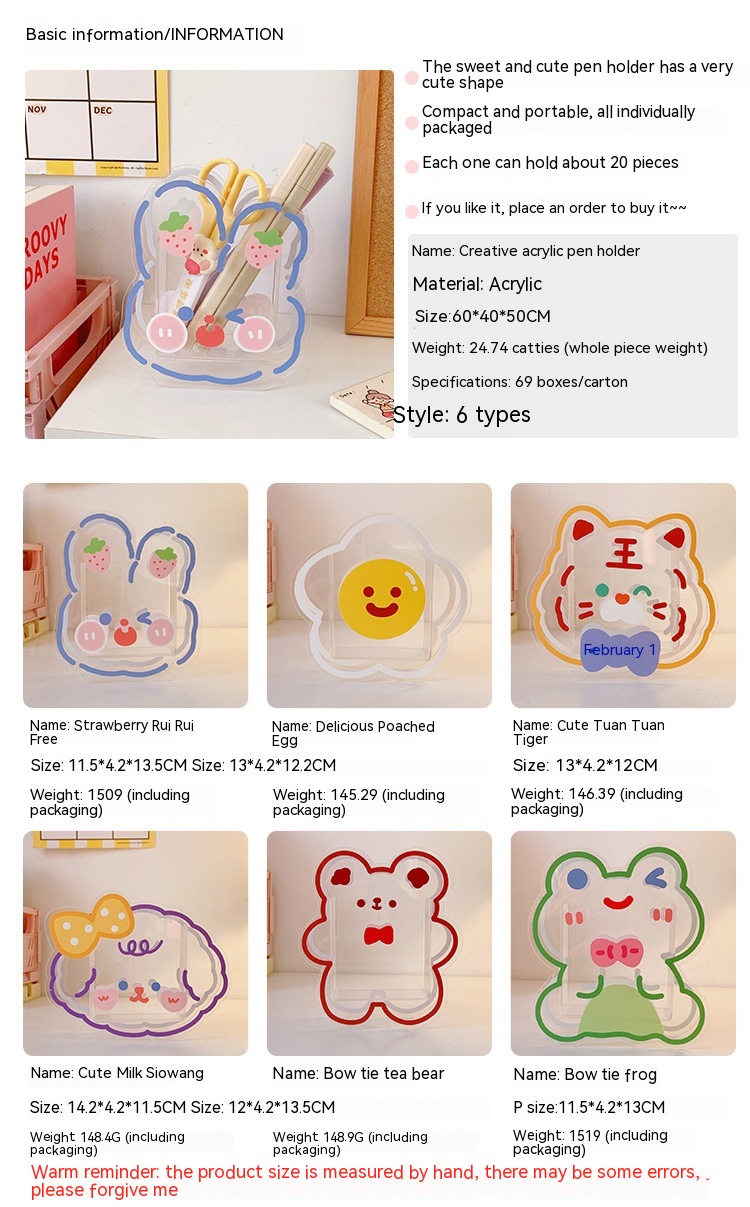 Color: 1# strawberry Ruirui rabbit, 2# delicious poached egg, 3# cute group tiger, 4# cute milk Siwang, 5# bow Tea fork bear, 6# little frog bow tie