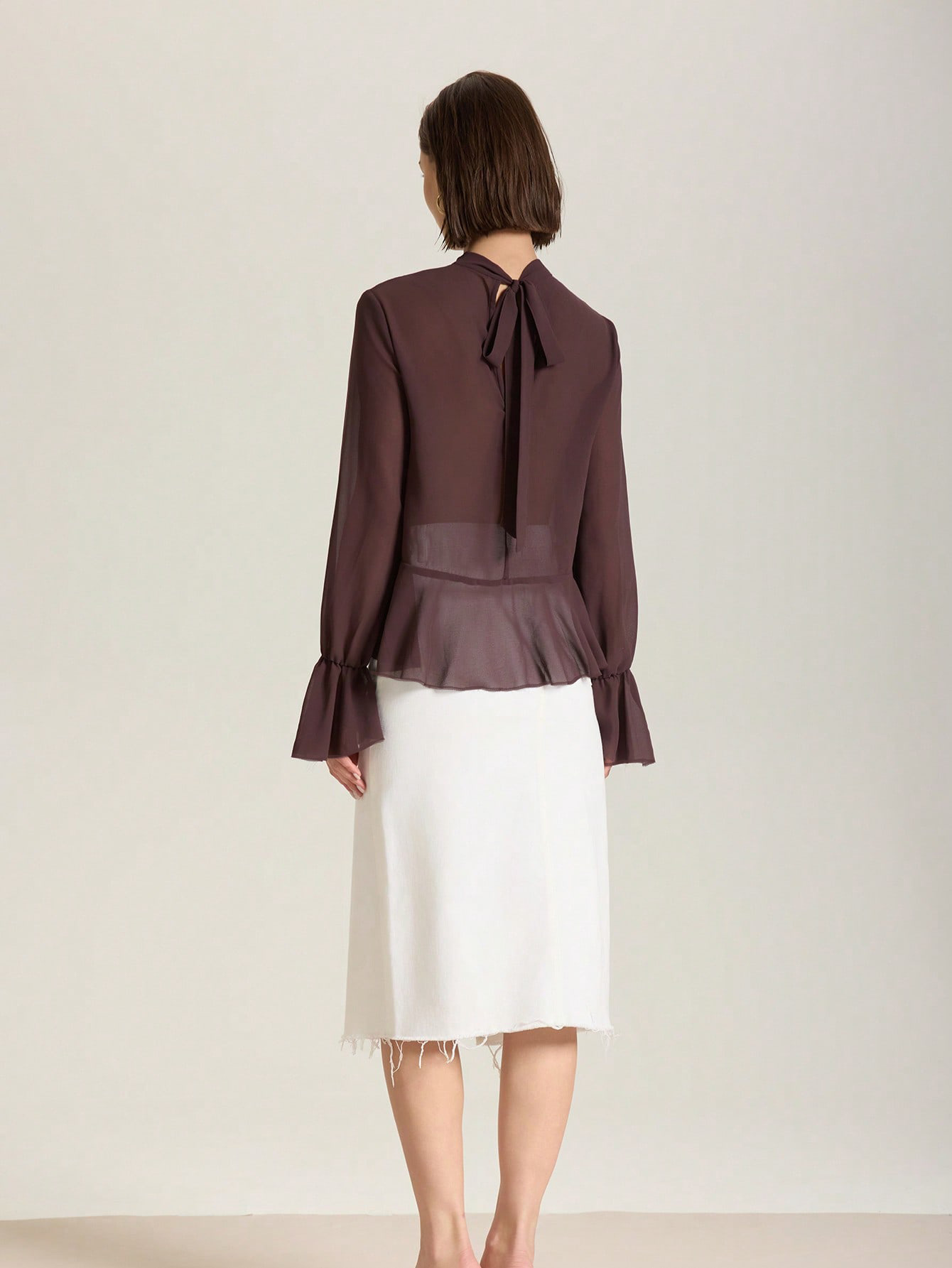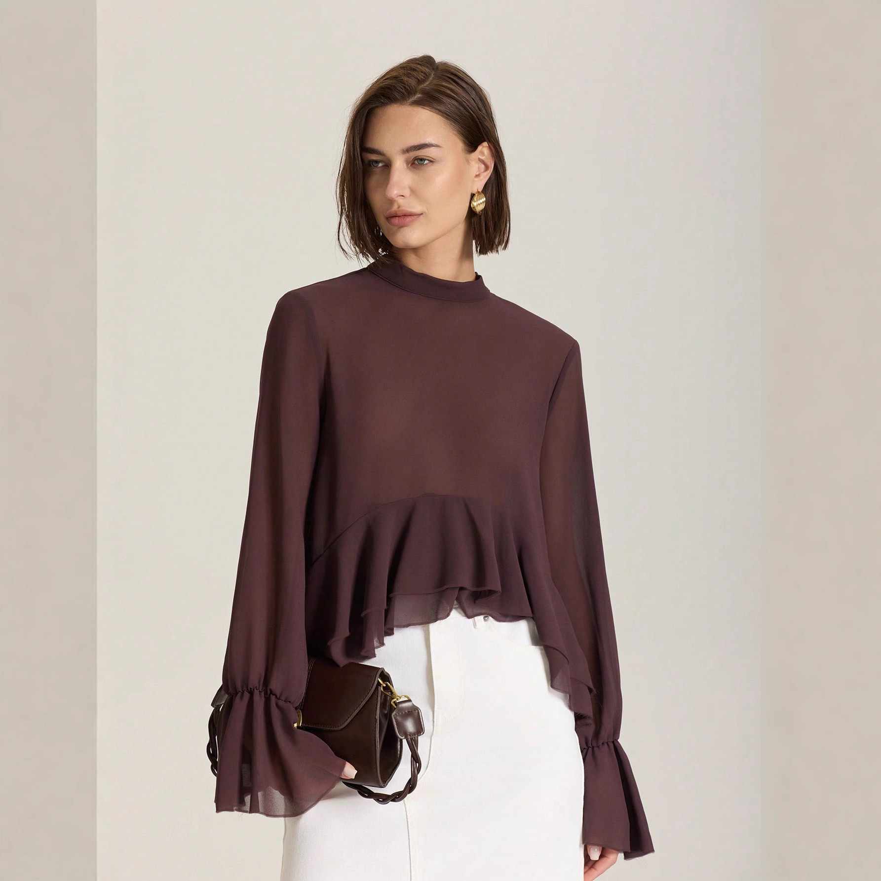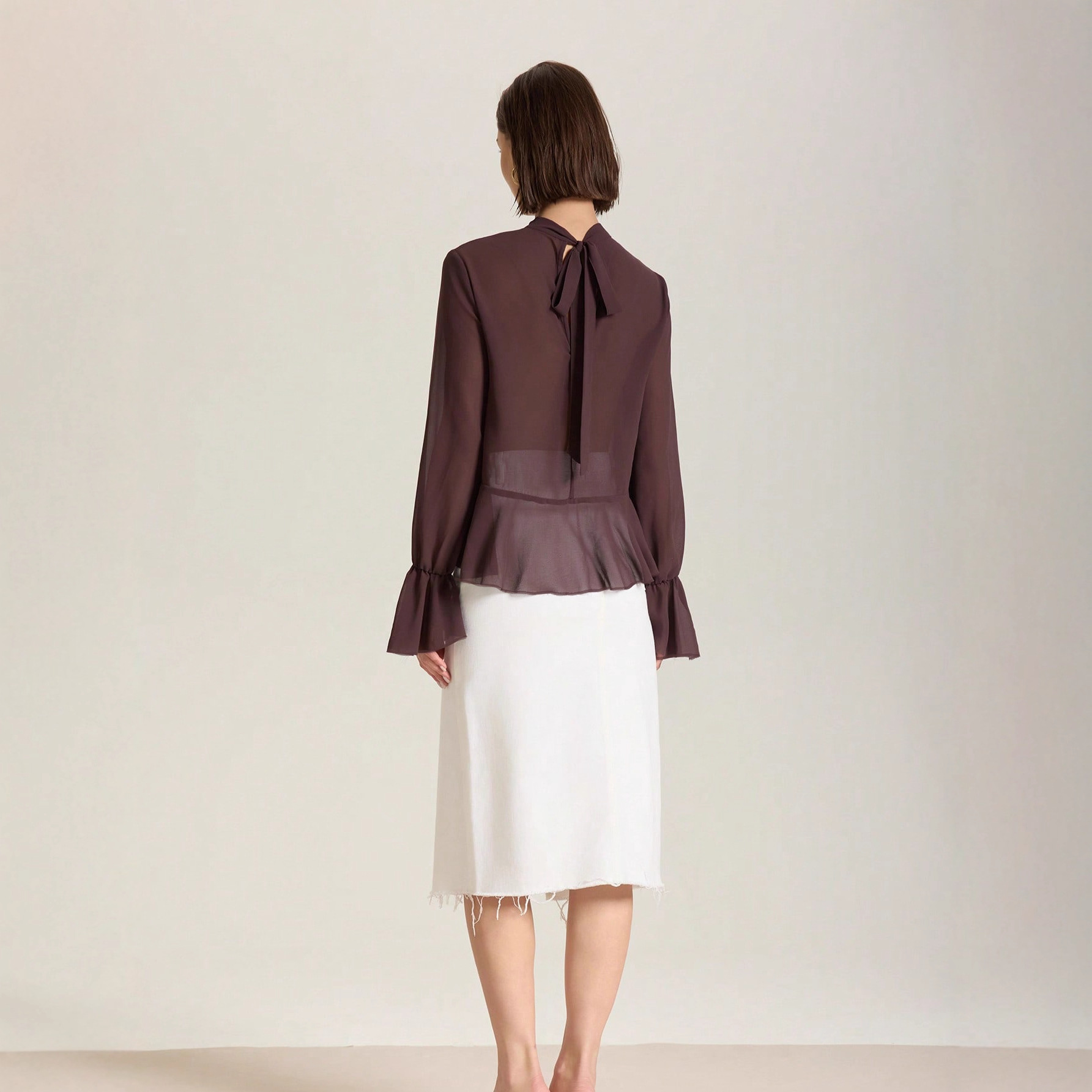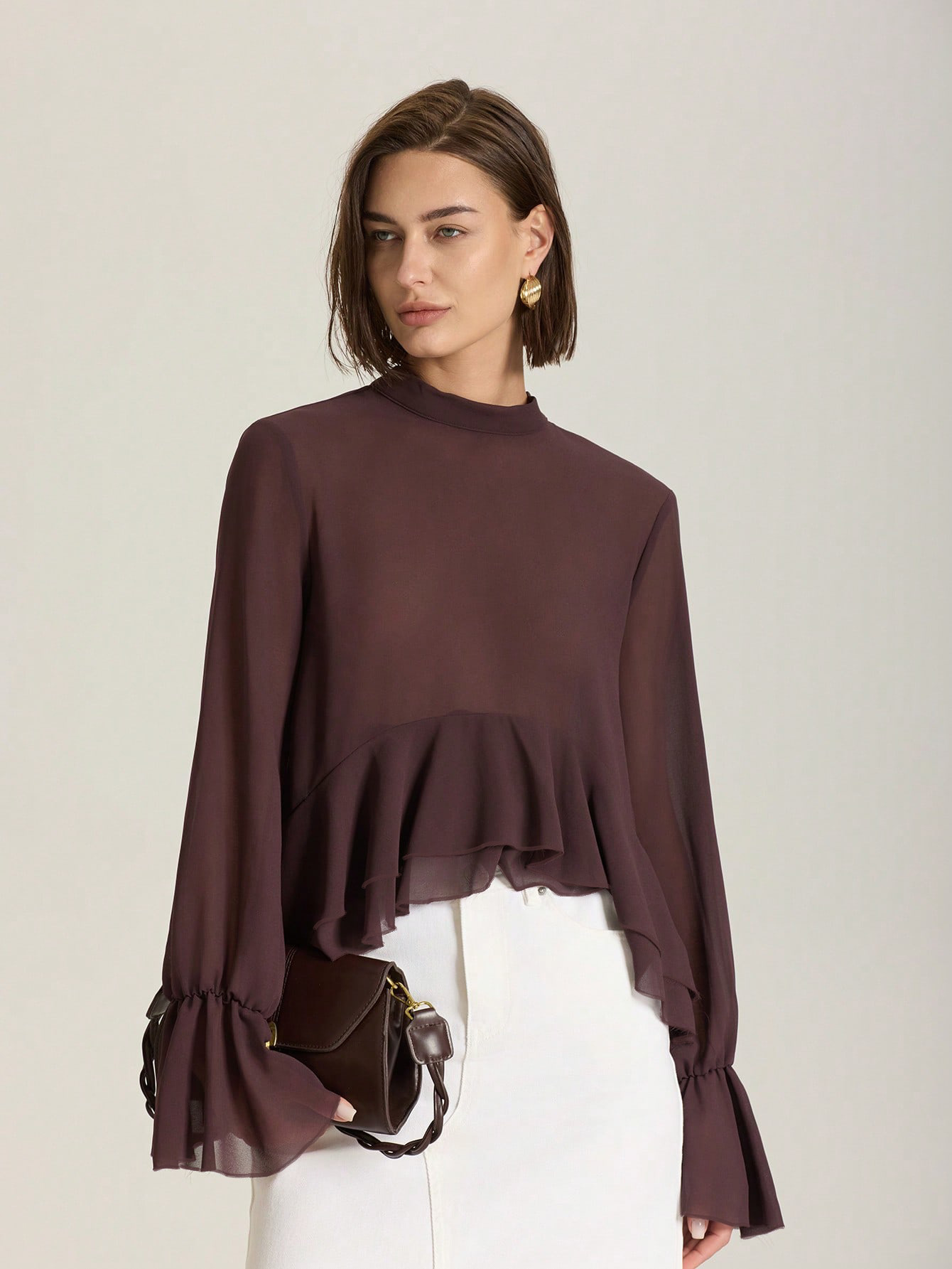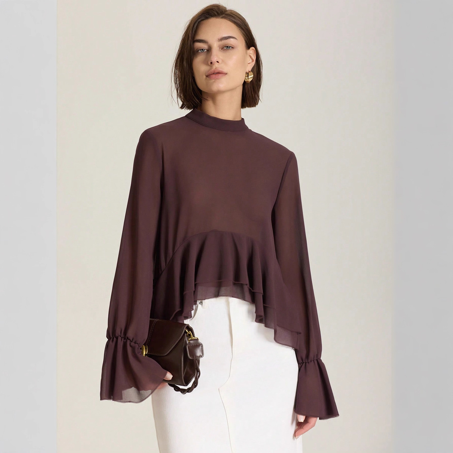 Womens Crew-neck Long-sleeve Layered Decorative Top