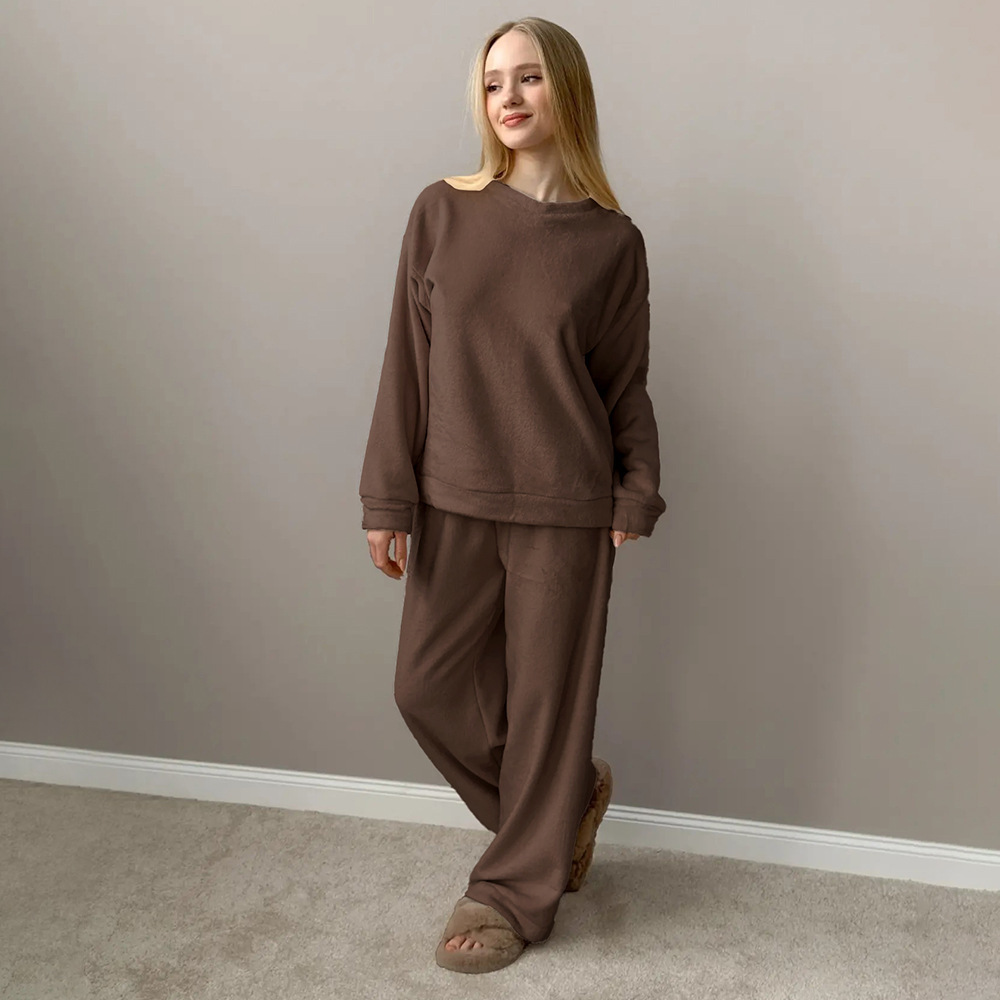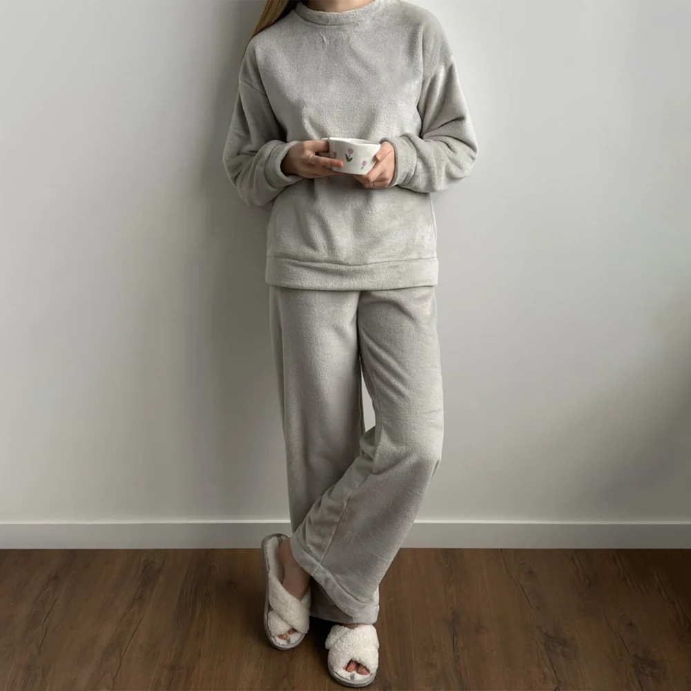 Womens Crew-neck Long-sleeve Top And Pants Pajama Set