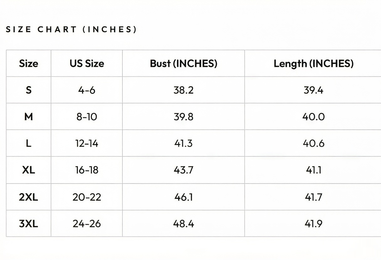 Sizes: S, M, L, 1XL, 2XL, 3XL, 4XL, 5XL