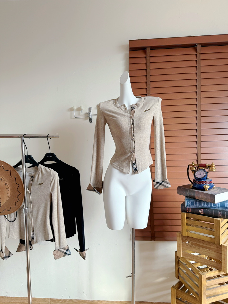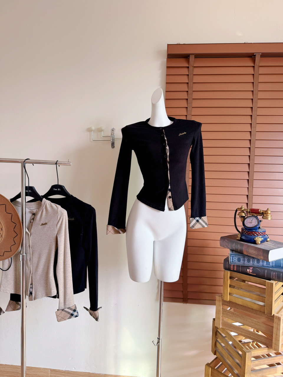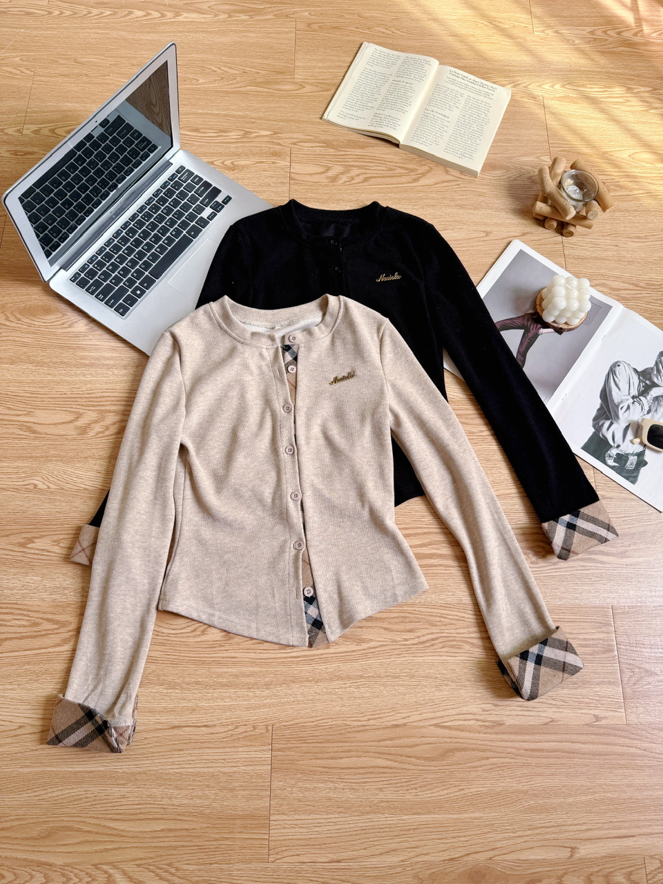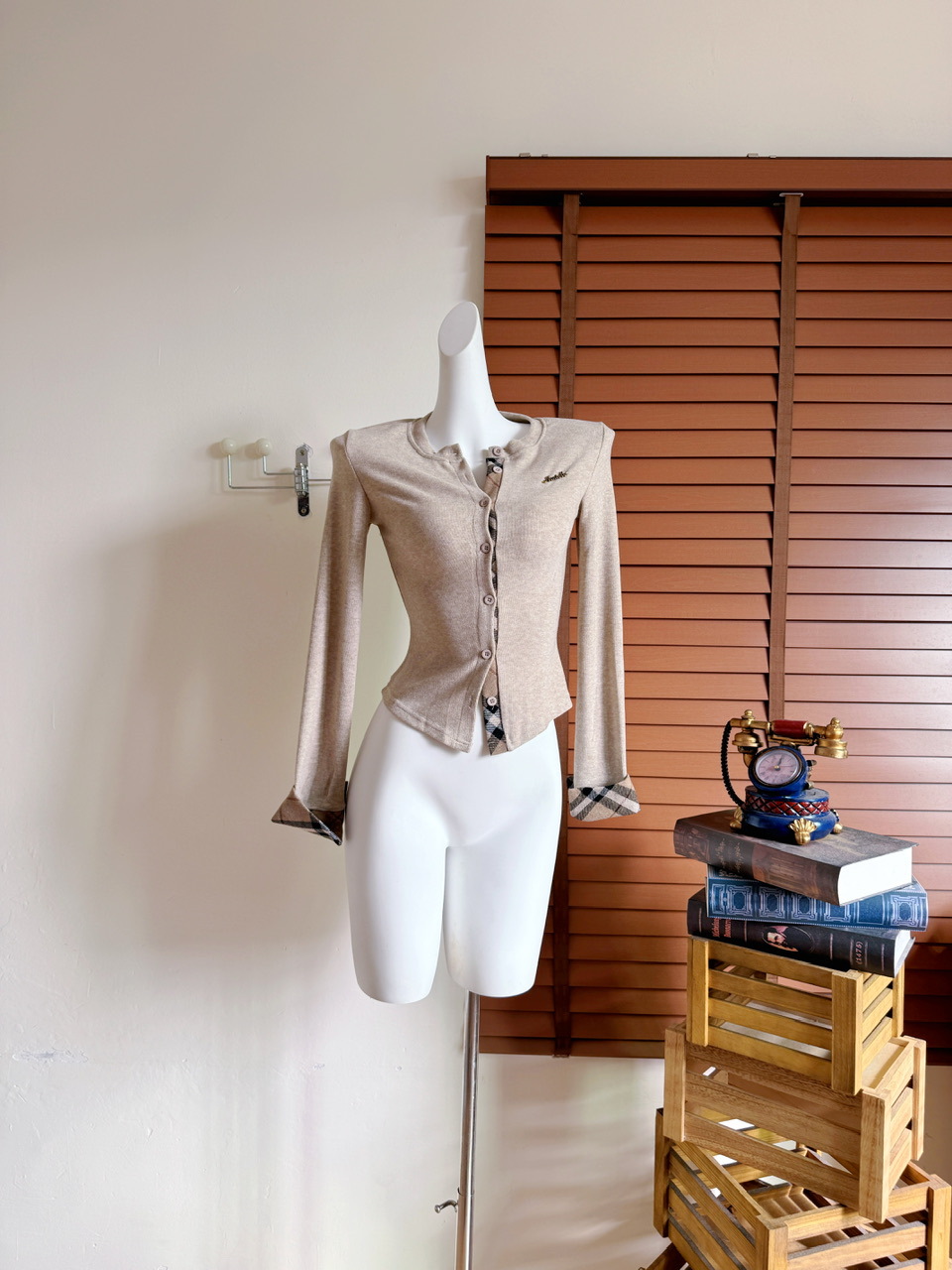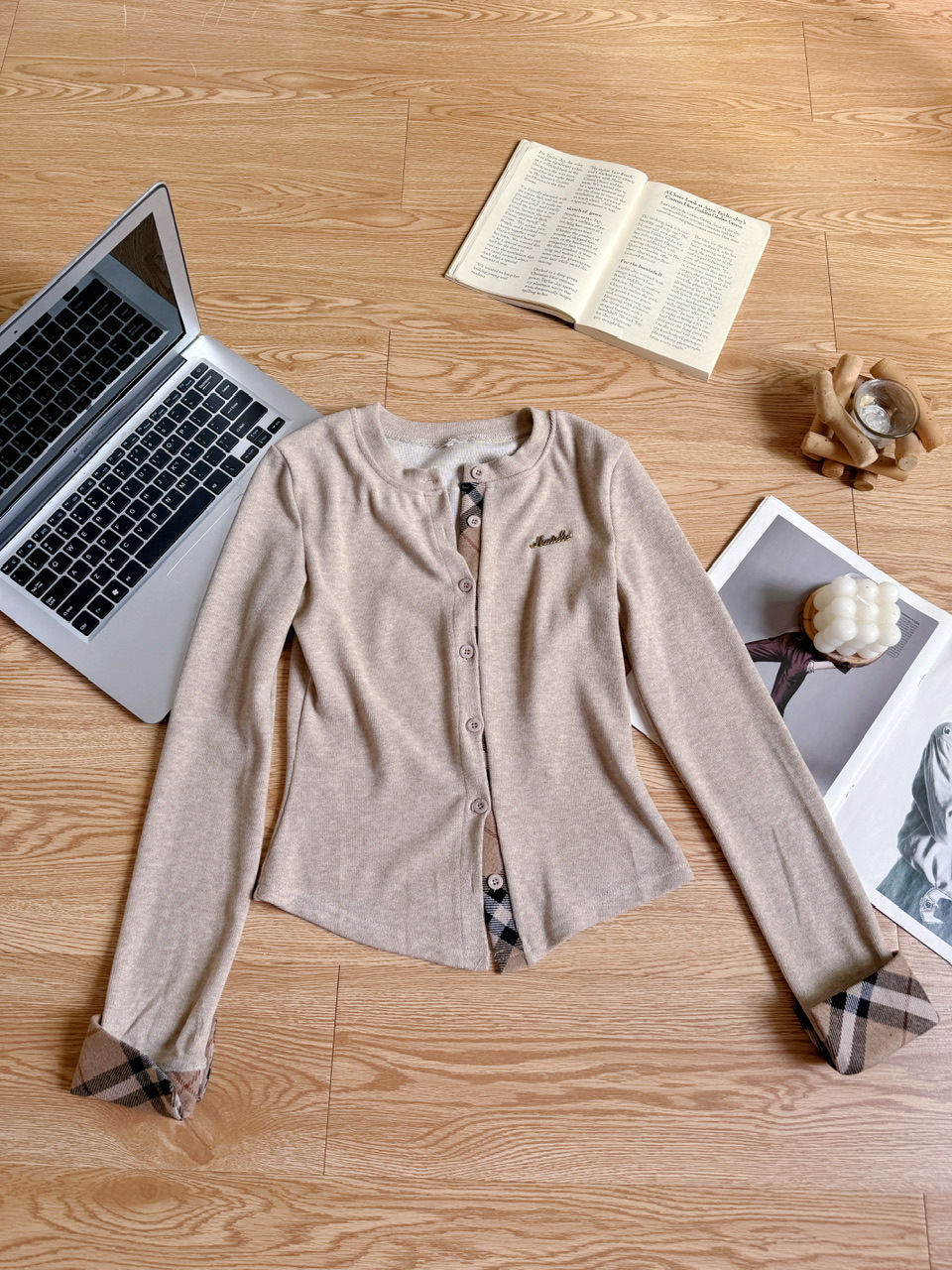Womens Crew-Neck, Slim-Fit, Long-Sleeve Knitted Cardigan Top