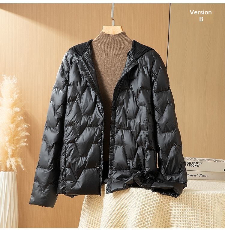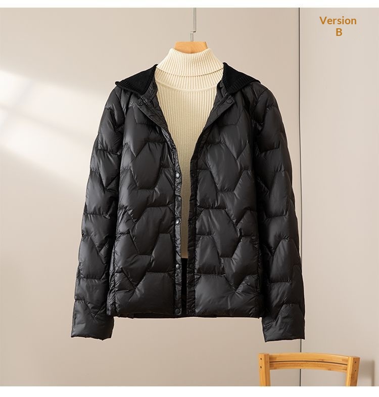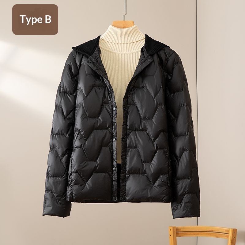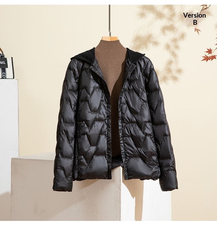 Womens Cropped Knit Beanie And Trendy V-neck Loose Down Jacket
