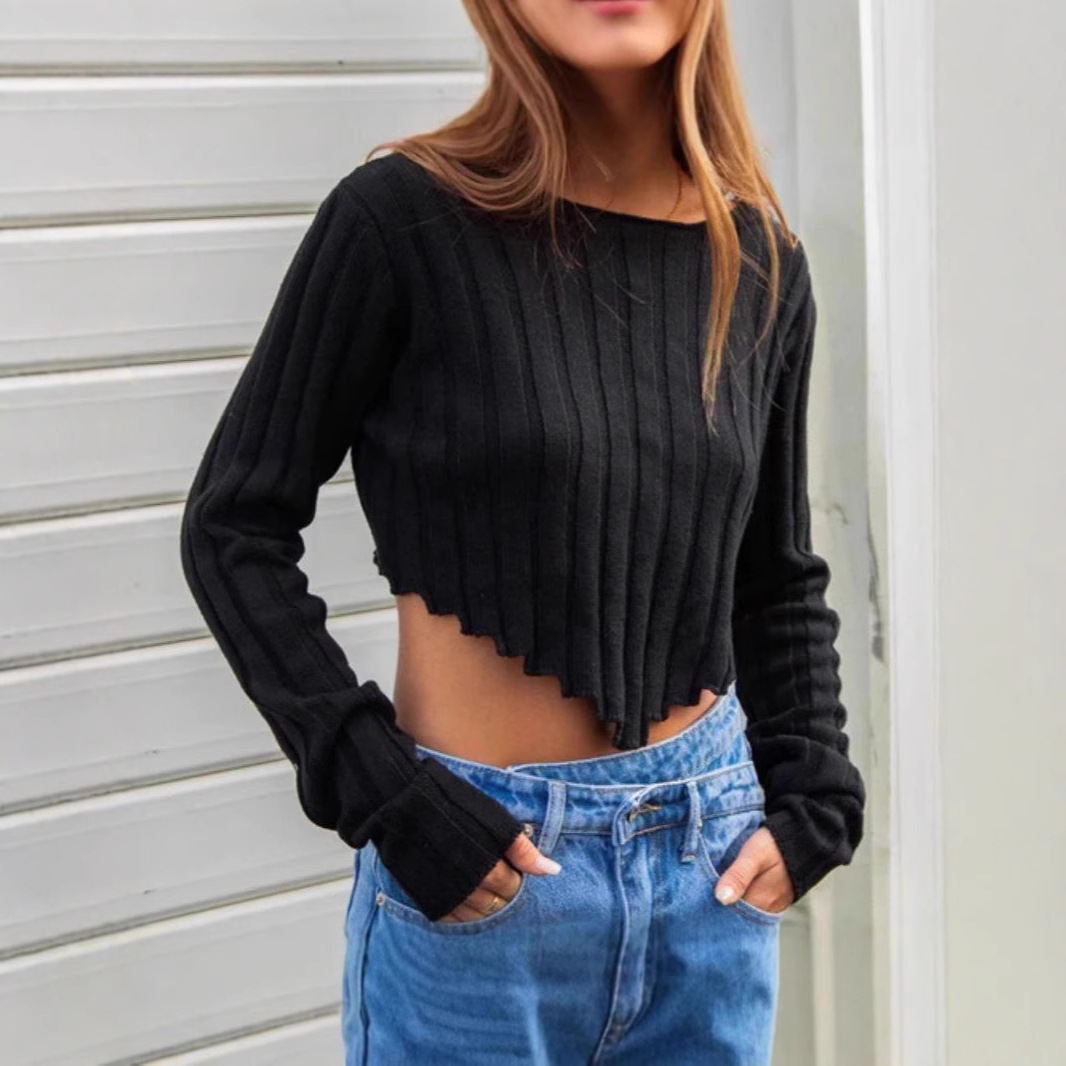 Women's Cropped Short Sweater Solid Color