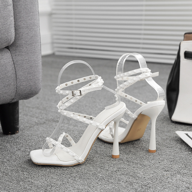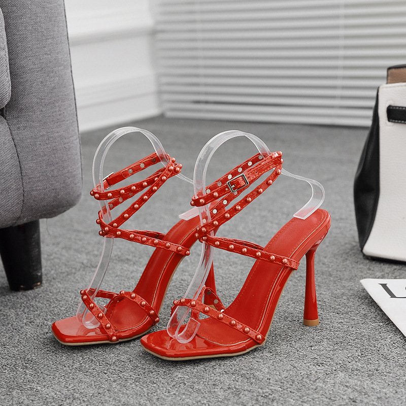 Women's Cross Strap Slip-on Square Toe Spray Paint Stiletto High Heel Sandals