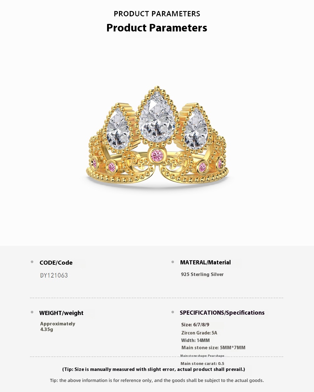 Color: Platinum DY121063-S-W-BO, gold DY121063-S-G-BO