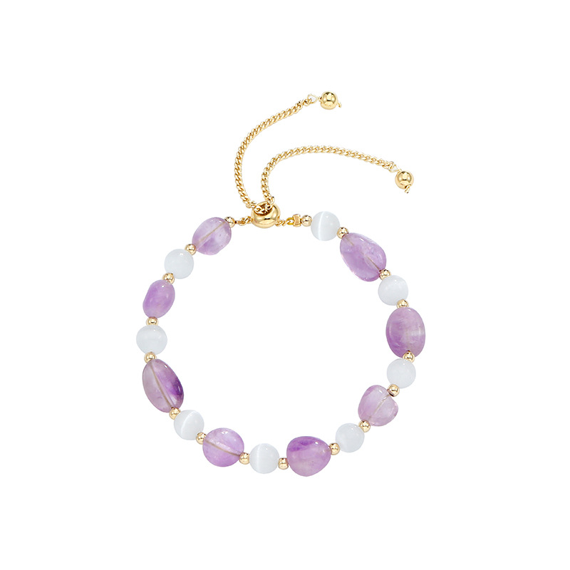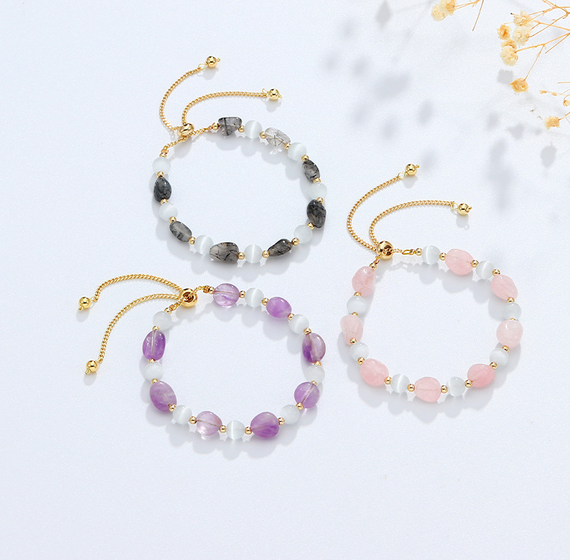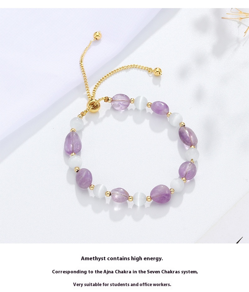 Color: Amethyst white cat eye bracelet, pink crystal white cat eye bracelet, black fur crystal white cat eye bracelet