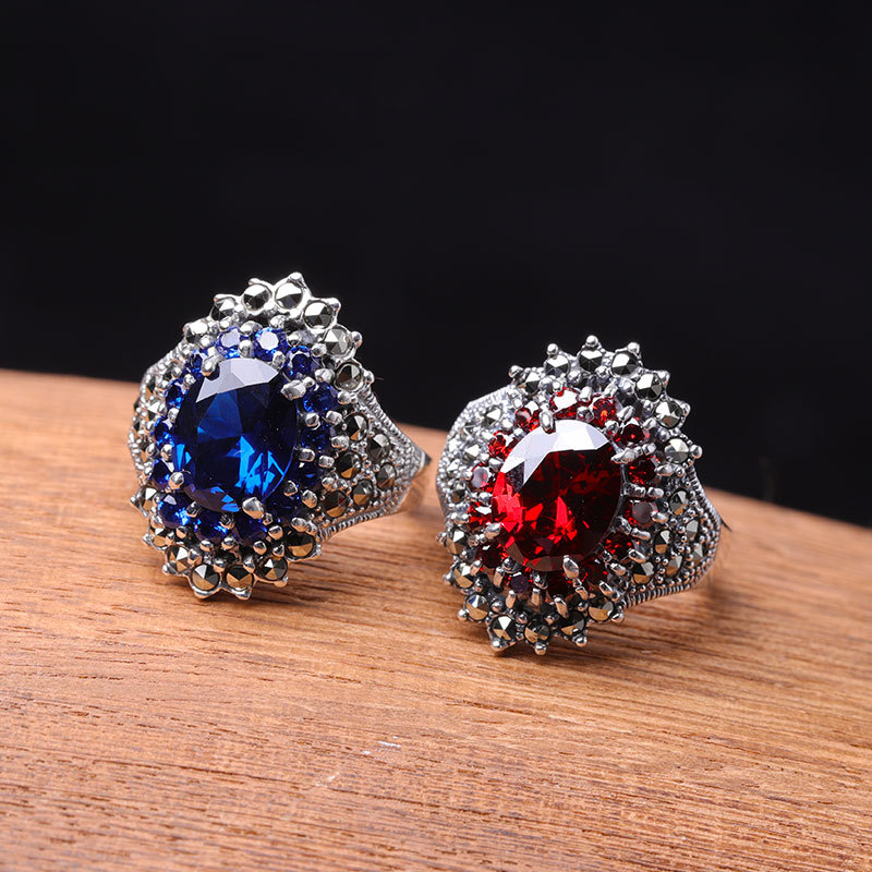 Color: pomegranate red ring, blue corundum ring